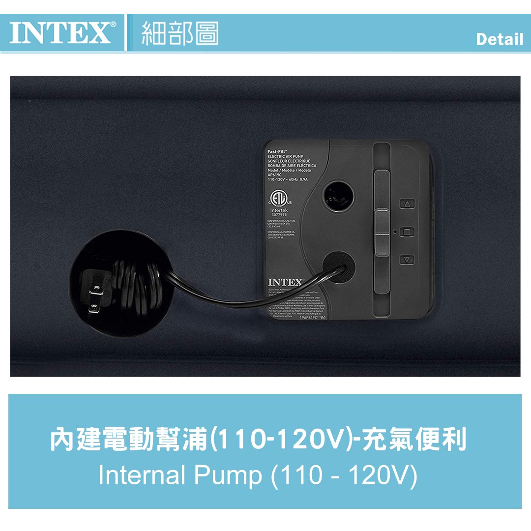內含:【INTEX】豪華三層內建電動幫浦雙人加大充氣床-(寬152*203*高51cm)