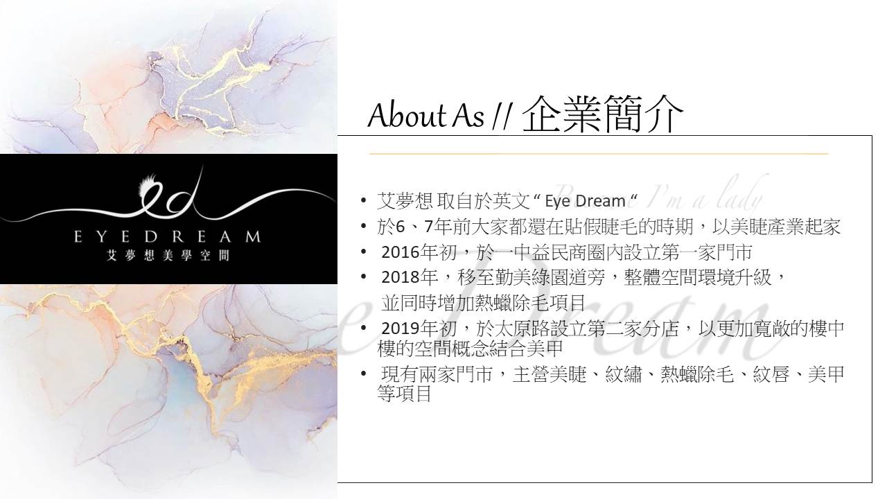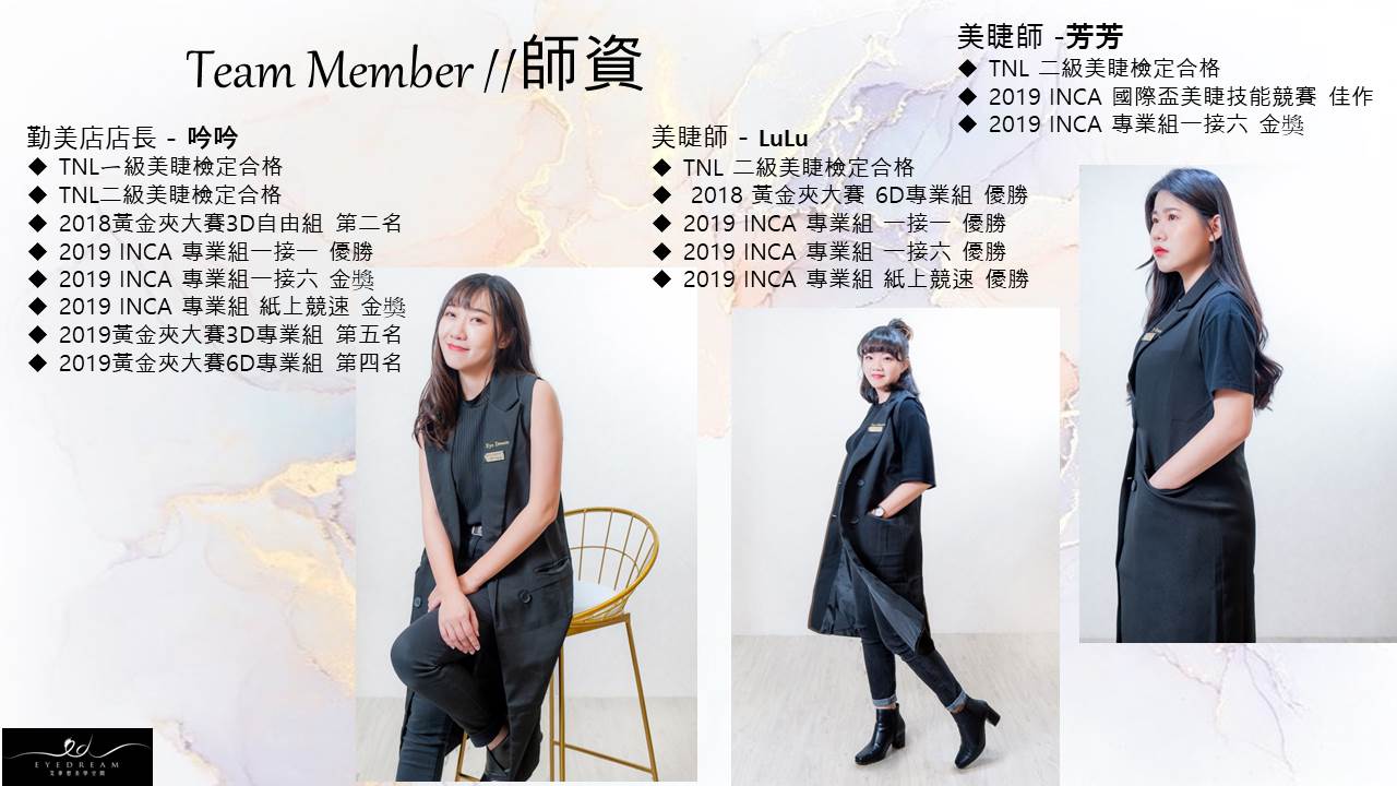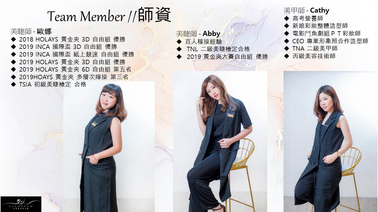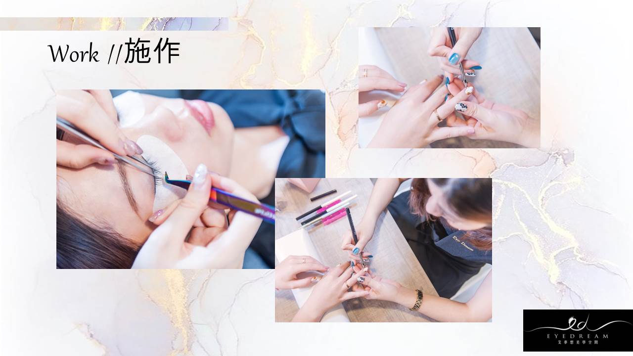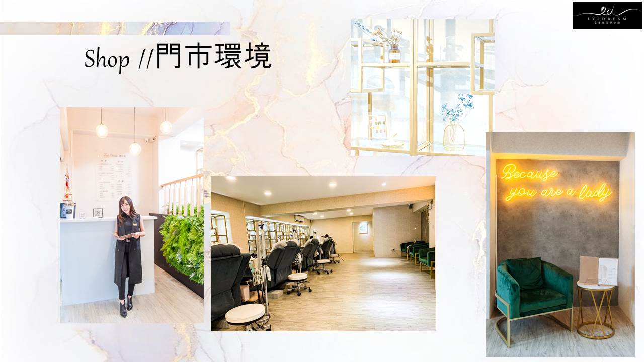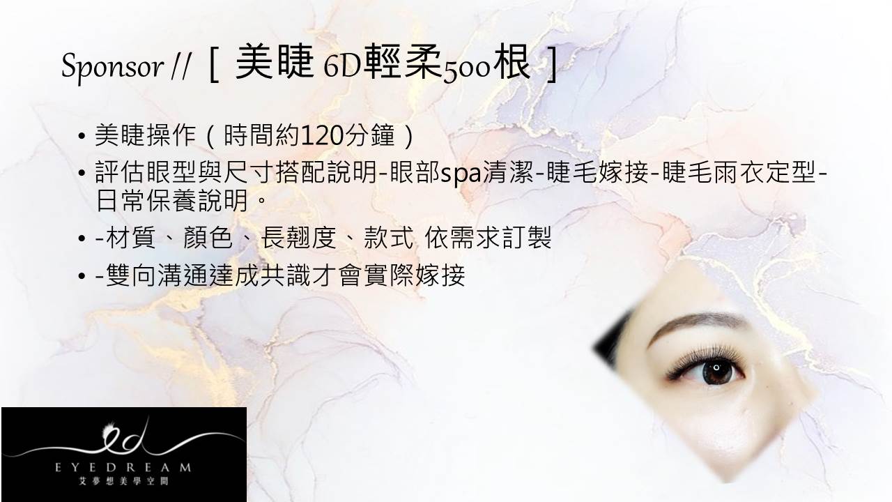 評估眼型與尺寸搭配說明-眼部spa清潔-睫毛嫁接-睫毛雨衣定型-日常保養說明。