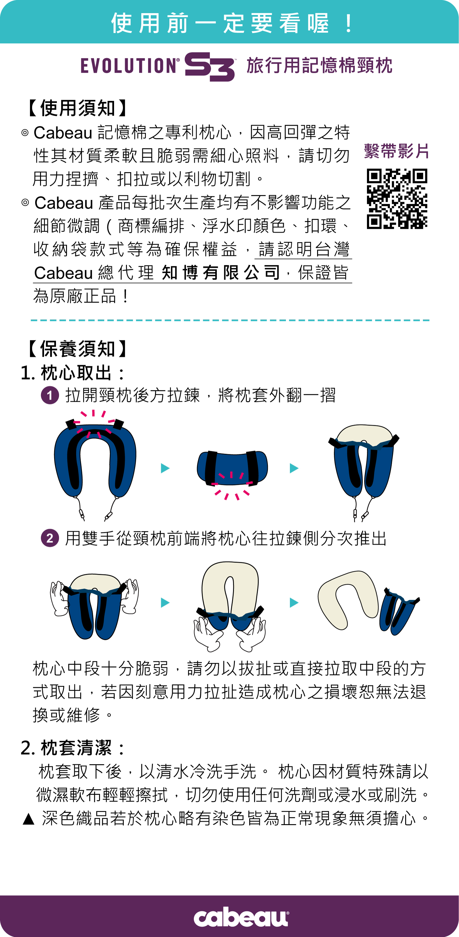 *Cabeau產品因每批次生產均有不影響功能之細節微調(商標編排、浮水印顏色等),為確保消費者權益,請認明台灣Cabeau總代理 知博有限公司 ,保證為原廠正品!