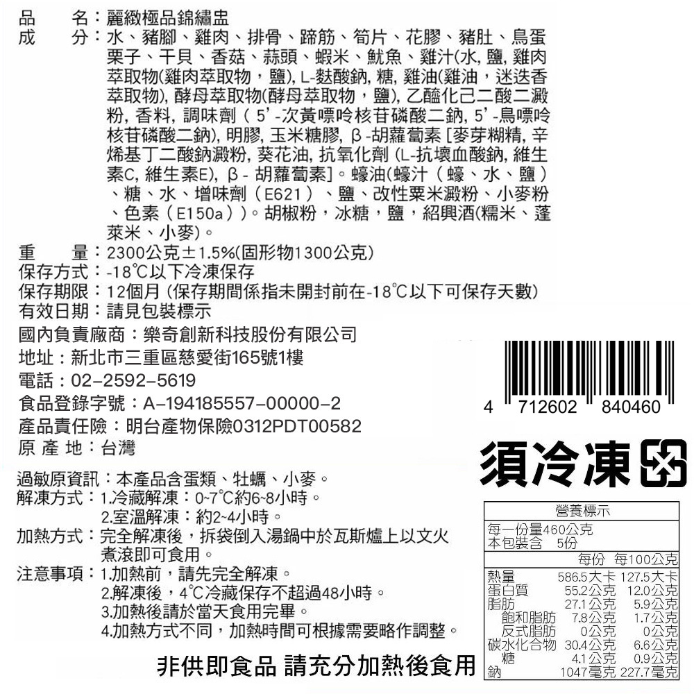 內含:【天香樓mini】麗緻極品錦繡盅佛跳牆-2300g(固1300g)