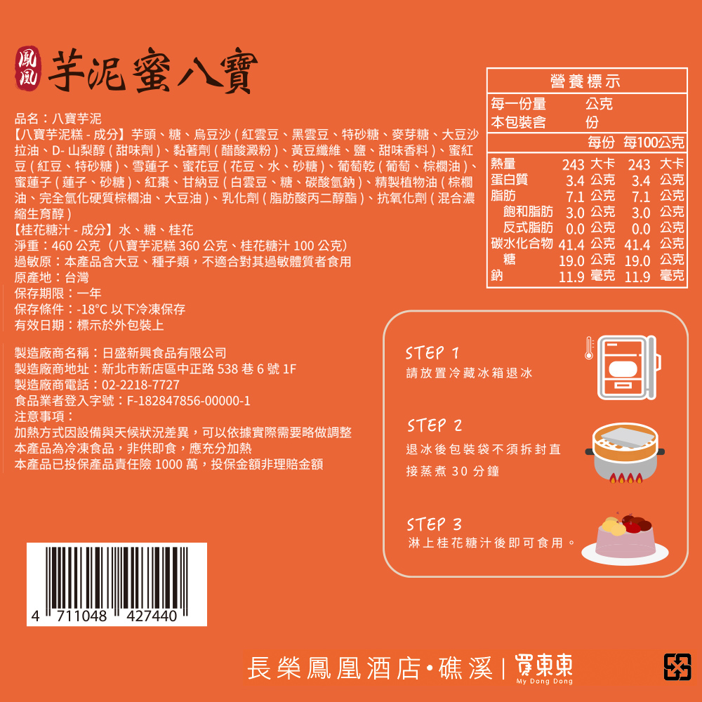 內含:【長榮鳳凰酒店(礁溪)】芋泥蜜八寶-460g