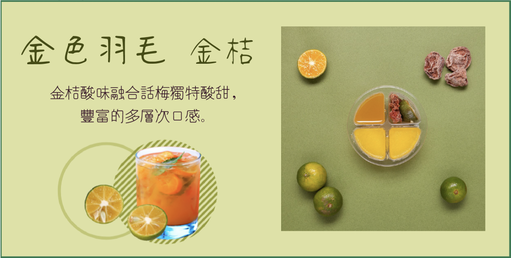 -金桔(金色羽毛):金桔酸味融合話梅獨特酸甜,豐富的多層次口感