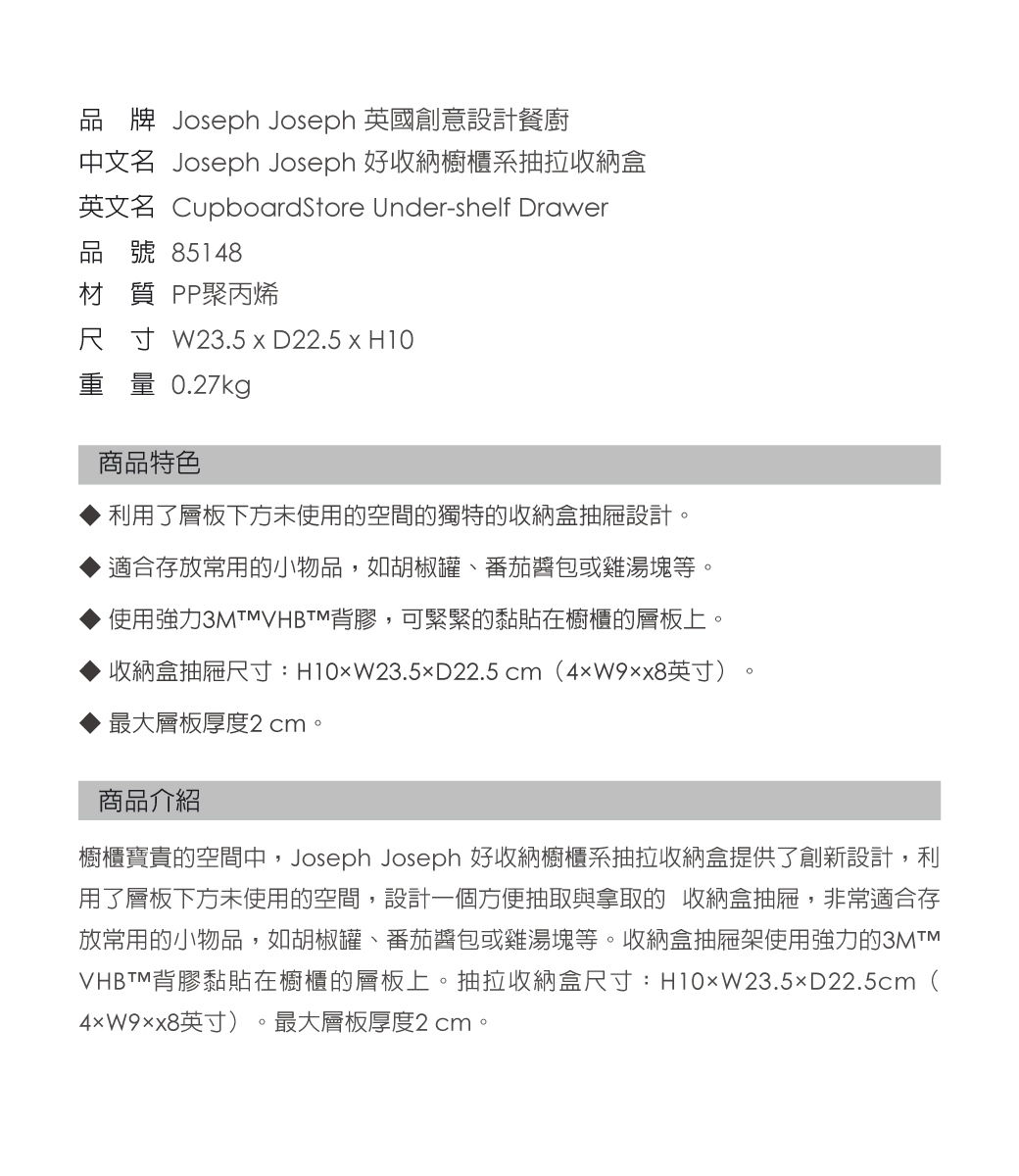 內含:【Joseph Joseph】好收納櫥櫃系抽拉收納盒*1