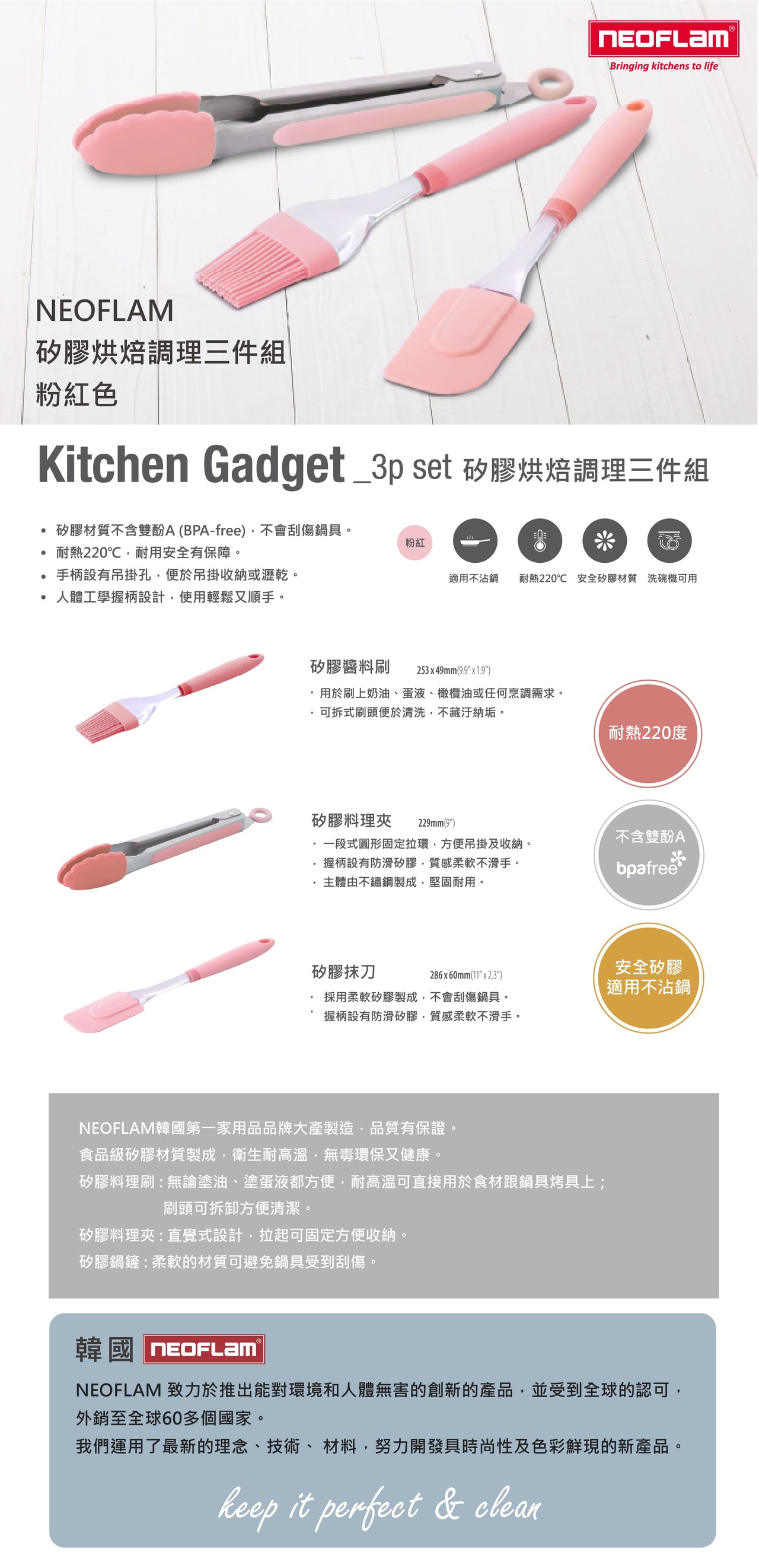 【NEOFLAM】粉色矽膠烘焙調理三件組