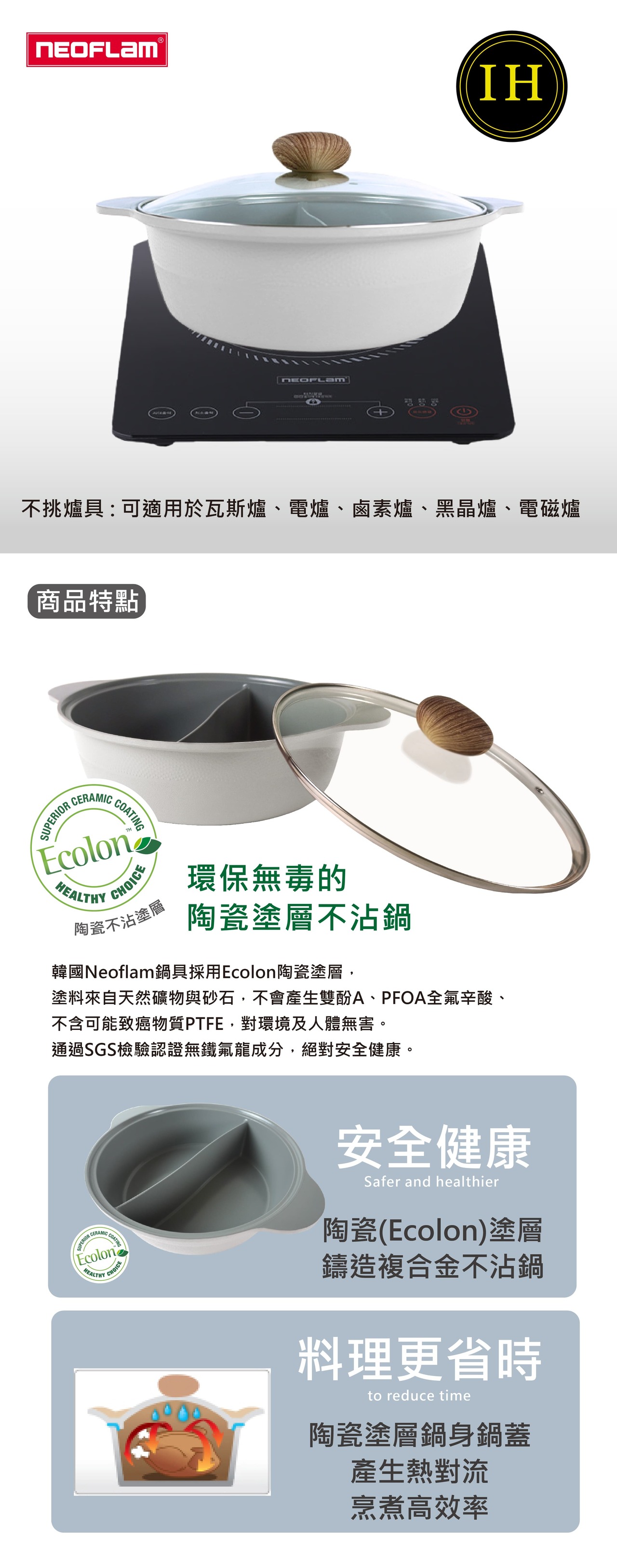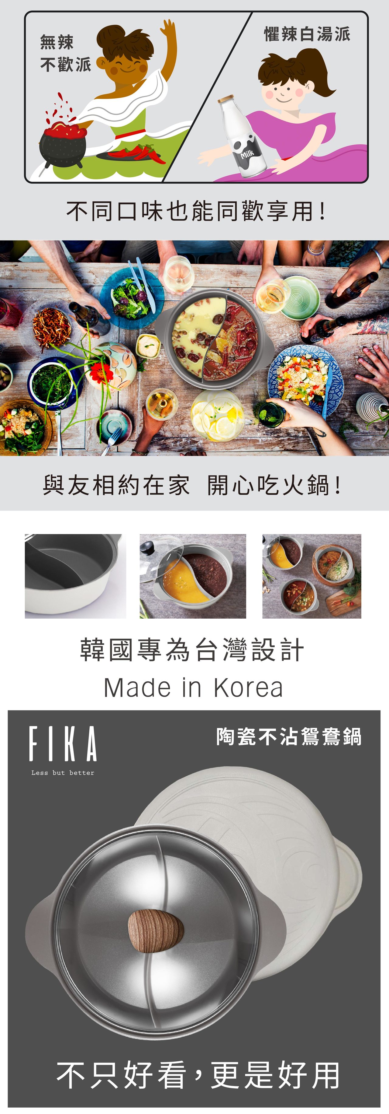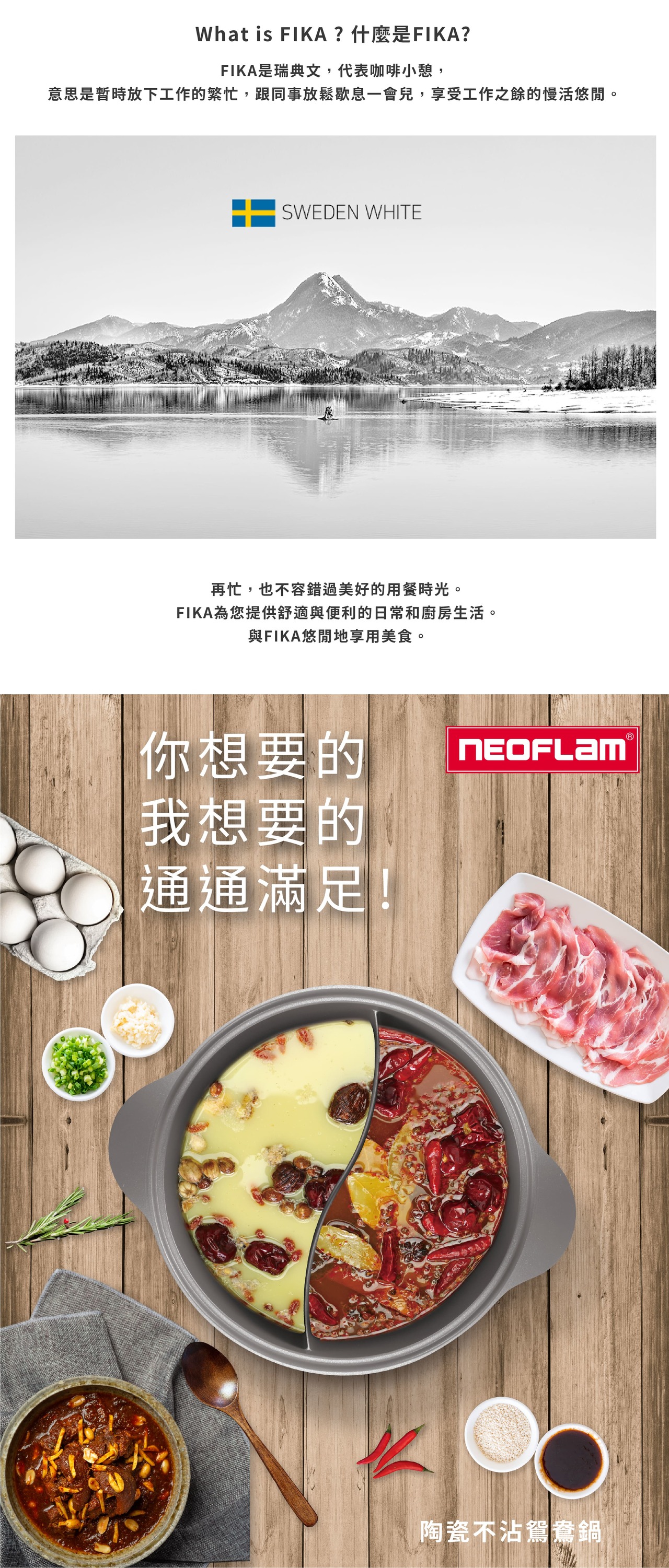 內含:【NEOFLAM】陶瓷不沾鑄造28公分鴛鴦鍋含玻璃蓋-FIKA(IH適用)