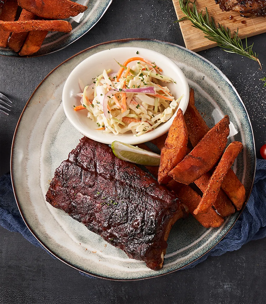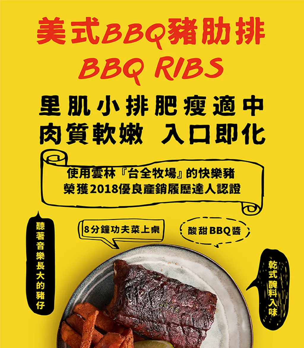 主廚採用肥瘦適中的里肌小排,乾式醃料入味,塗上酸甜的BBQ醬,
