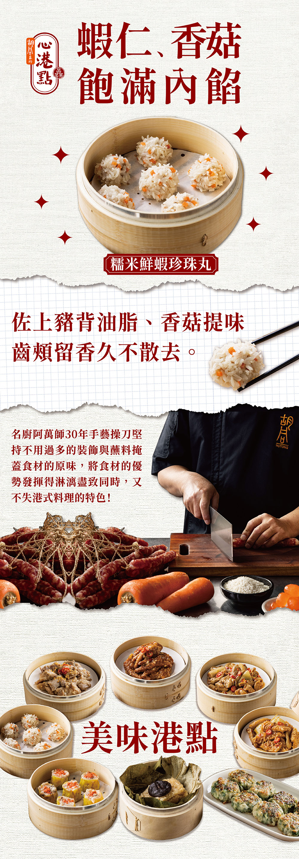 有別於一般坊間常見的港點,堅持不用過多的裝飾與蘸料掩蓋食材的原味,將食材的優勢發揮得淋漓盡致同時,又不失港式料理的特色,讓食客既能品嚐到食物最原始的風味,也能享用正宗道地的港點。