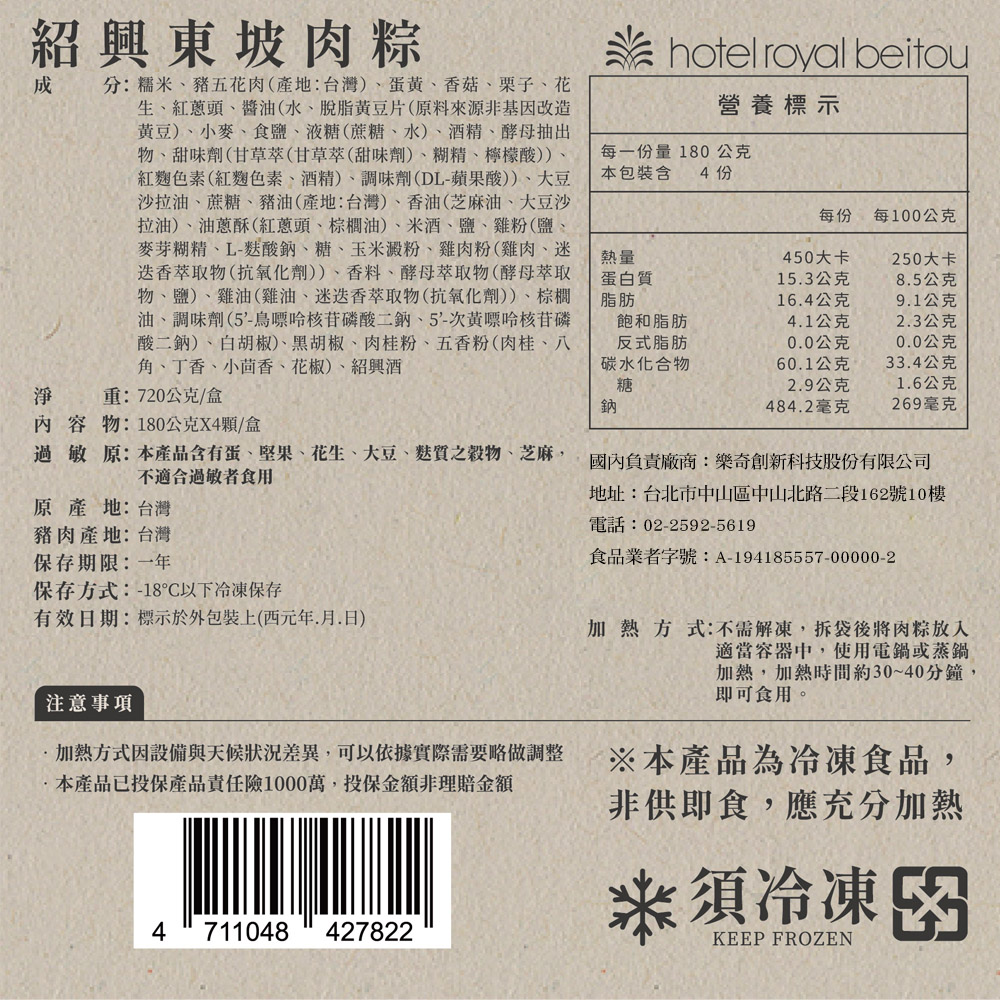【北投老爺酒店】紹興東坡肉粽禮盒(4入) 2026/3/12