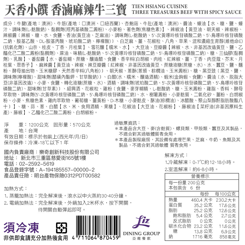 內含:【天香樓mini】牛三寶香滷麻辣鍋1200g