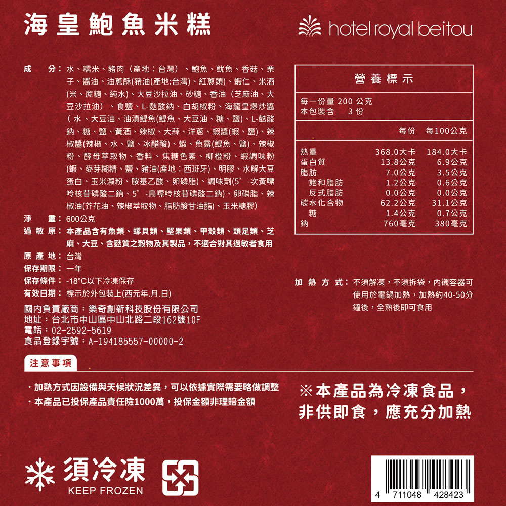 內含:【北投老爺酒店】海皇鮑魚米糕-600g