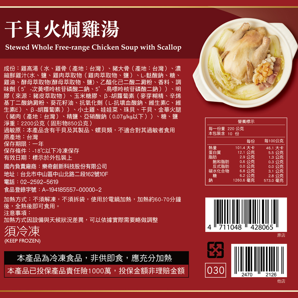 內含:干貝火烔雞湯-2200g(固形物850g)