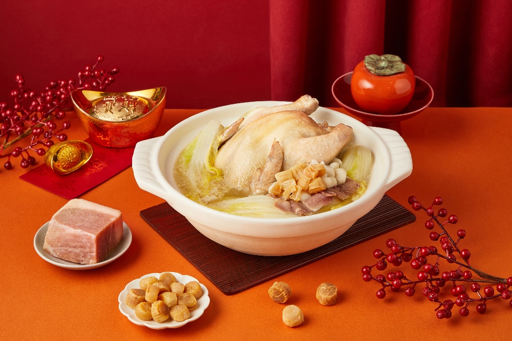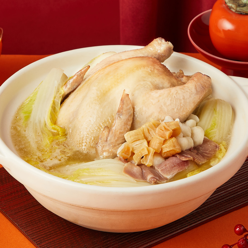 嚴選台灣土雞搭配鮮甜干貝與金華火腿特選部位「火烔」,以慢火細熬,並加入新鮮蔬菜,湯頭鮮美滋補。這道湯品溫暖身心,讓您在每一口中都感受到精緻的滋味,帶來無與倫比的養生享受!