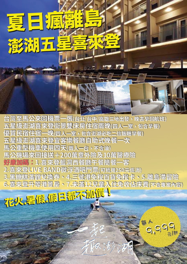 內含:1.台灣⾄⾺公來回機票⼀張(台北/台中/⾼雄三地出發,晚去早回航班)