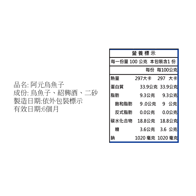 內含:💡內容物:阿元師紹興烏魚子 約重4兩