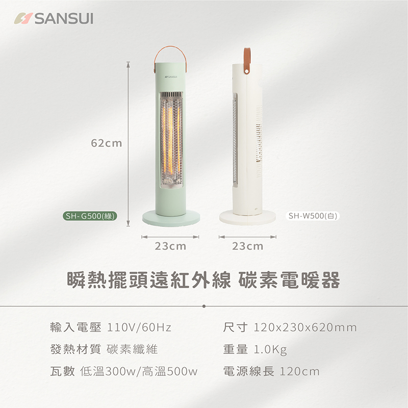 內含:【山水SANSUI】瞬熱擺頭遠紅外線碳素電暖器 典雅白/莫蘭迪綠