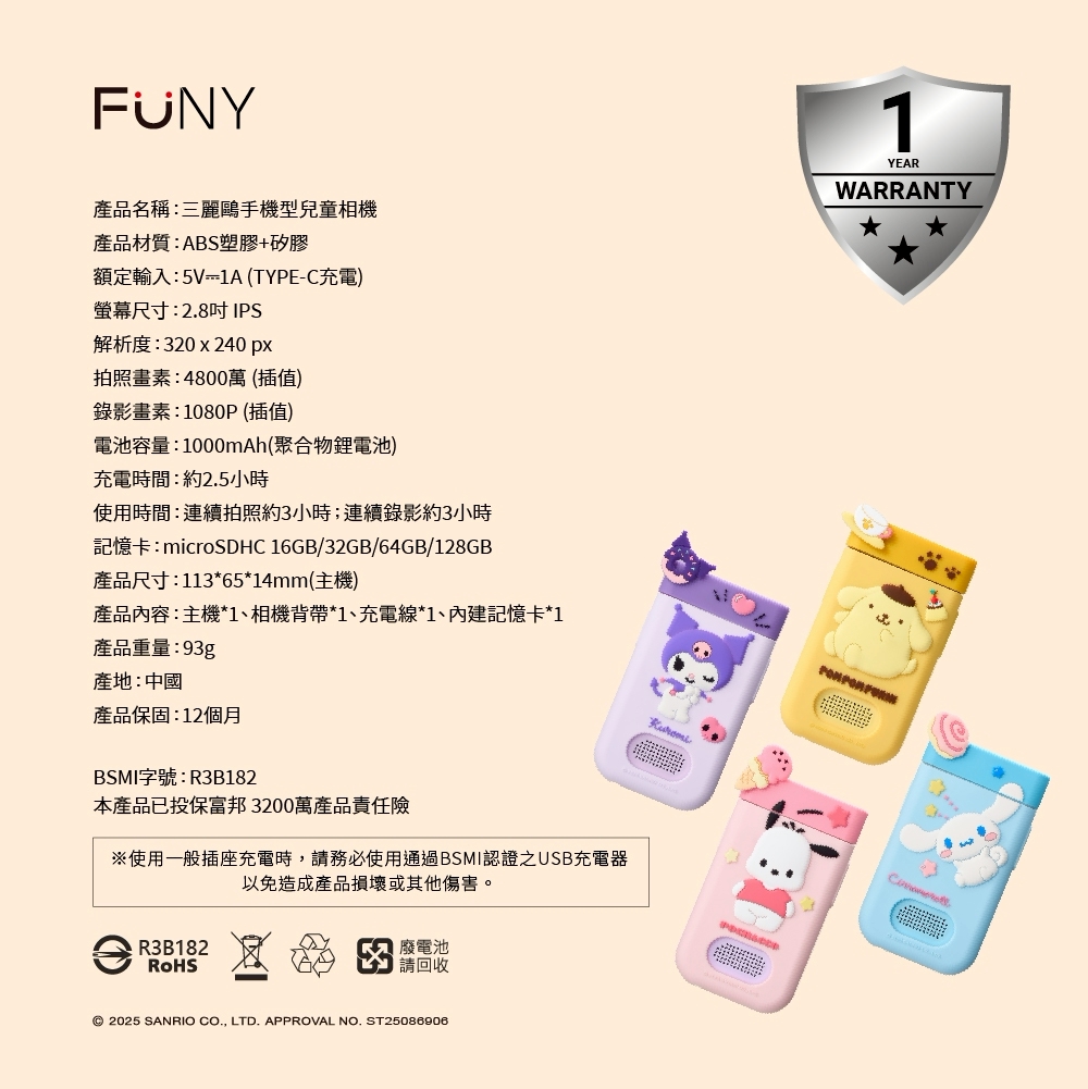 產品名稱: FUNY三麗鷗手機型兒童相機