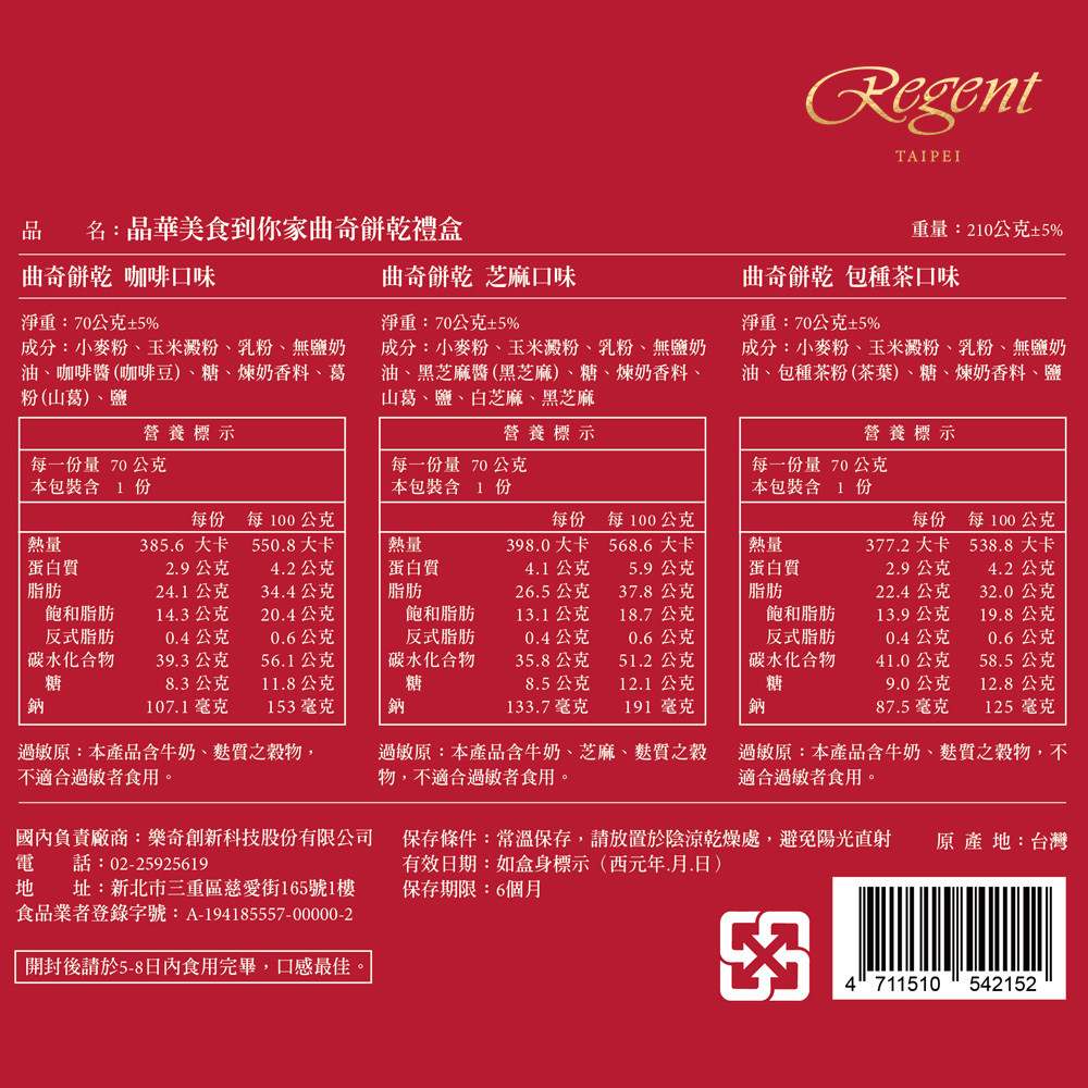 內含:【台北晶華酒店】晶華美食到你家曲奇餅乾禮盒