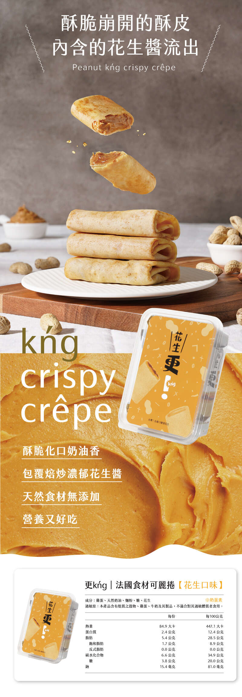 內含:TKACS111_【更kńg 可麗捲】台南13號落花生(蛋奶素)6入組