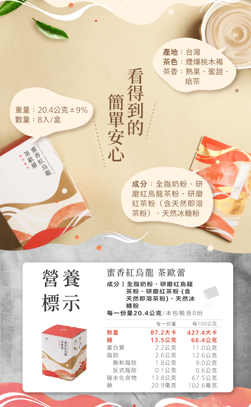 茶品:蜜香紅烏龍 茶歐蕾 (8入)