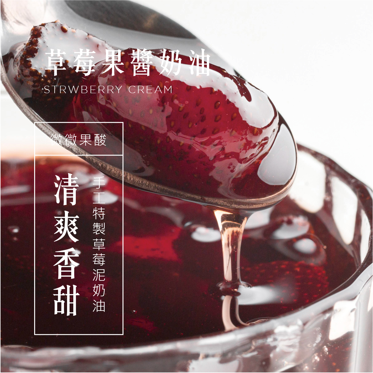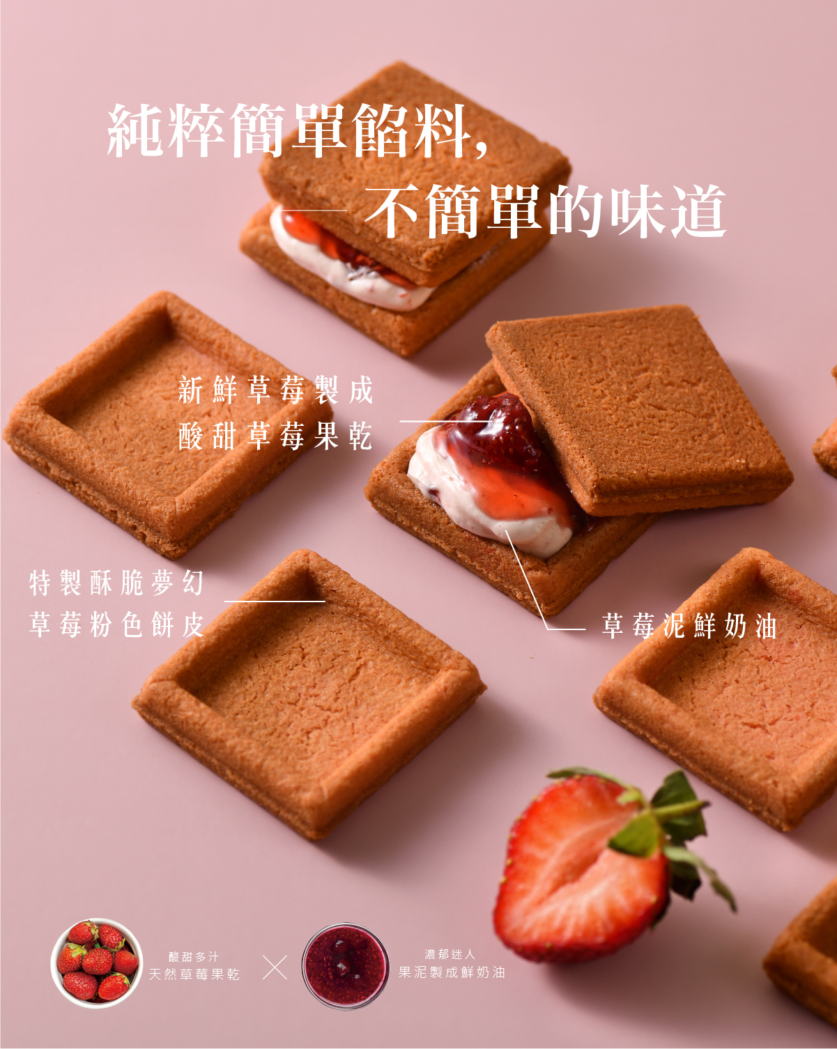 搭配由新鮮草莓製作的草莓果乾,再與草莓奶油雙層呼應,
