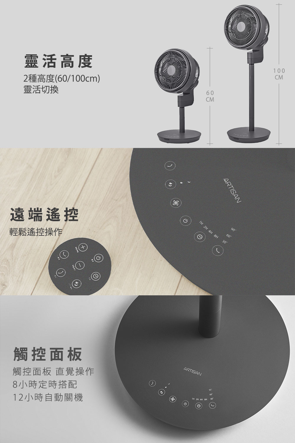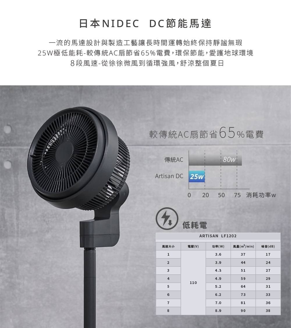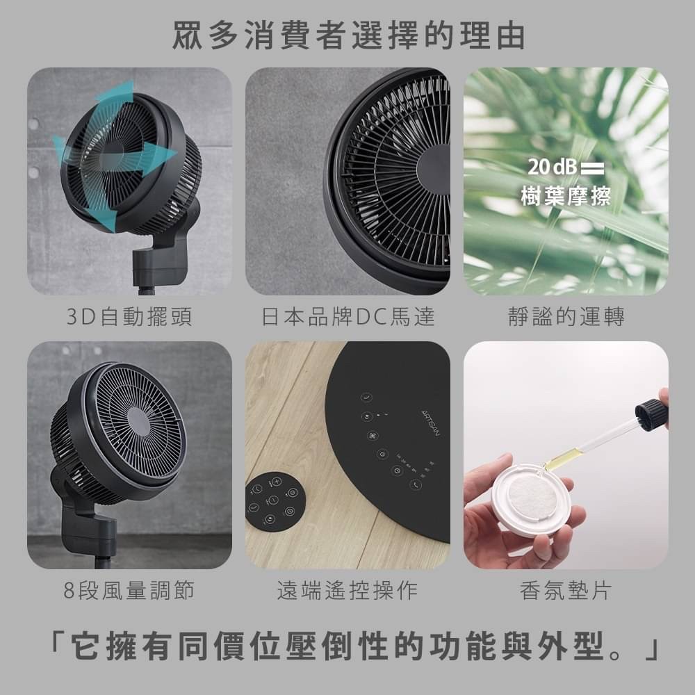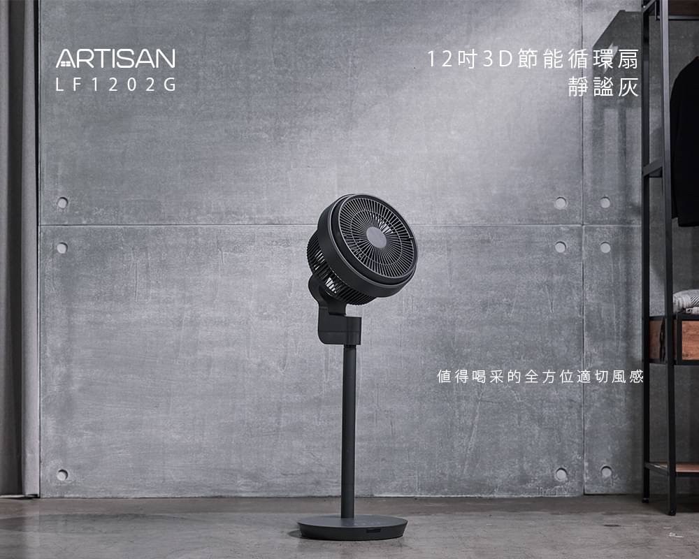 內含:【Artisan】12吋3D節能循環扇_靜謐灰*1