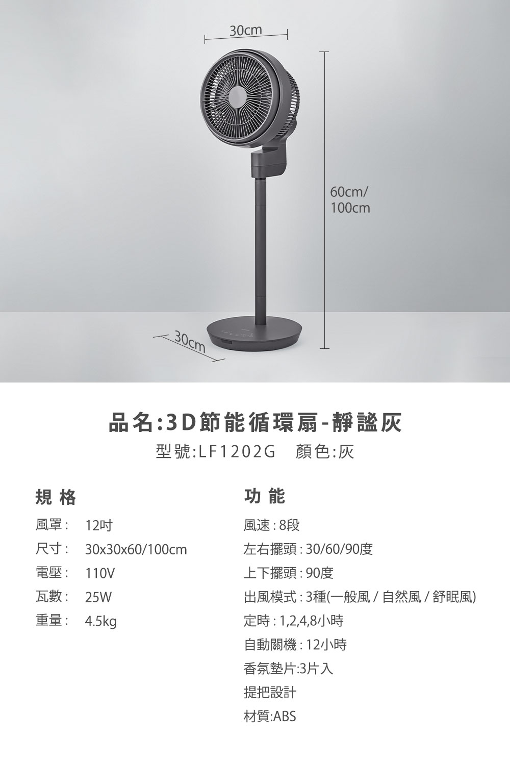 ● 8小時定時,12吋電扇,贈香氛片