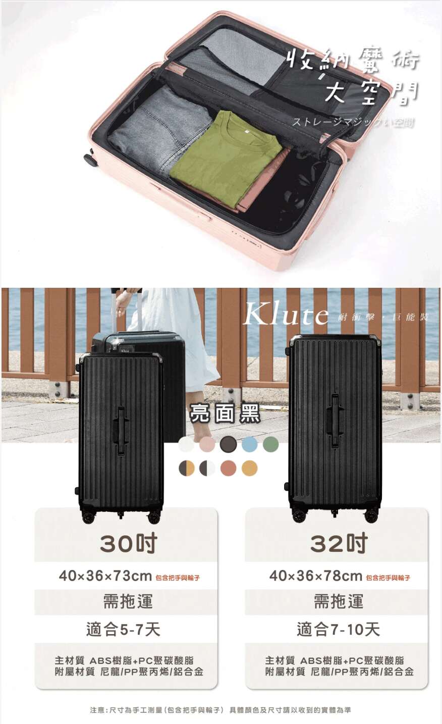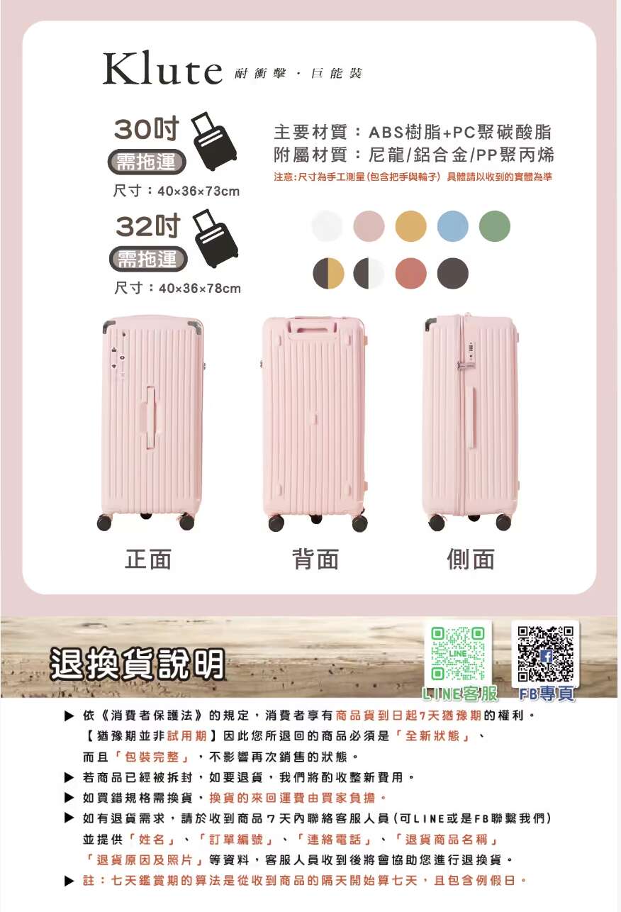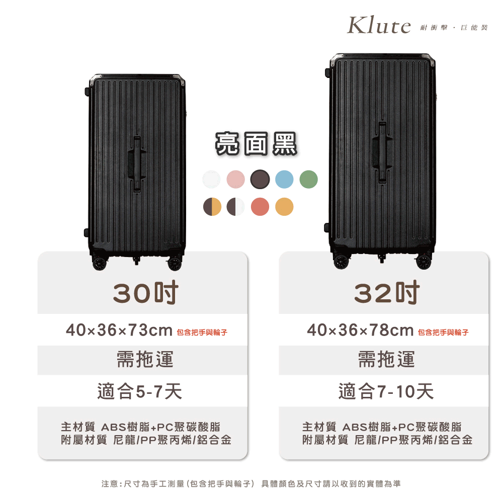 內含:【Klute】32吋防撞款行李箱+送防潑水防塵套 *1