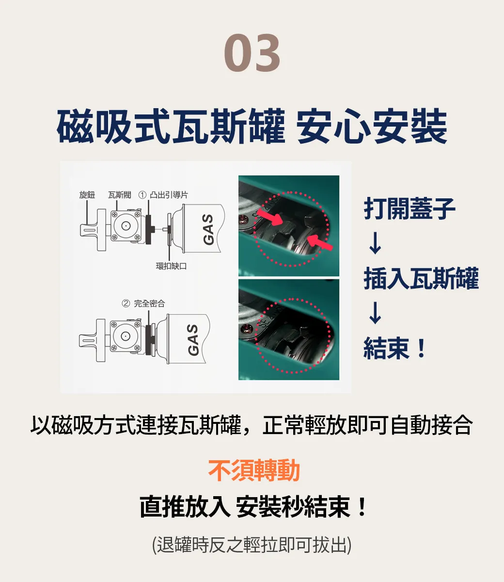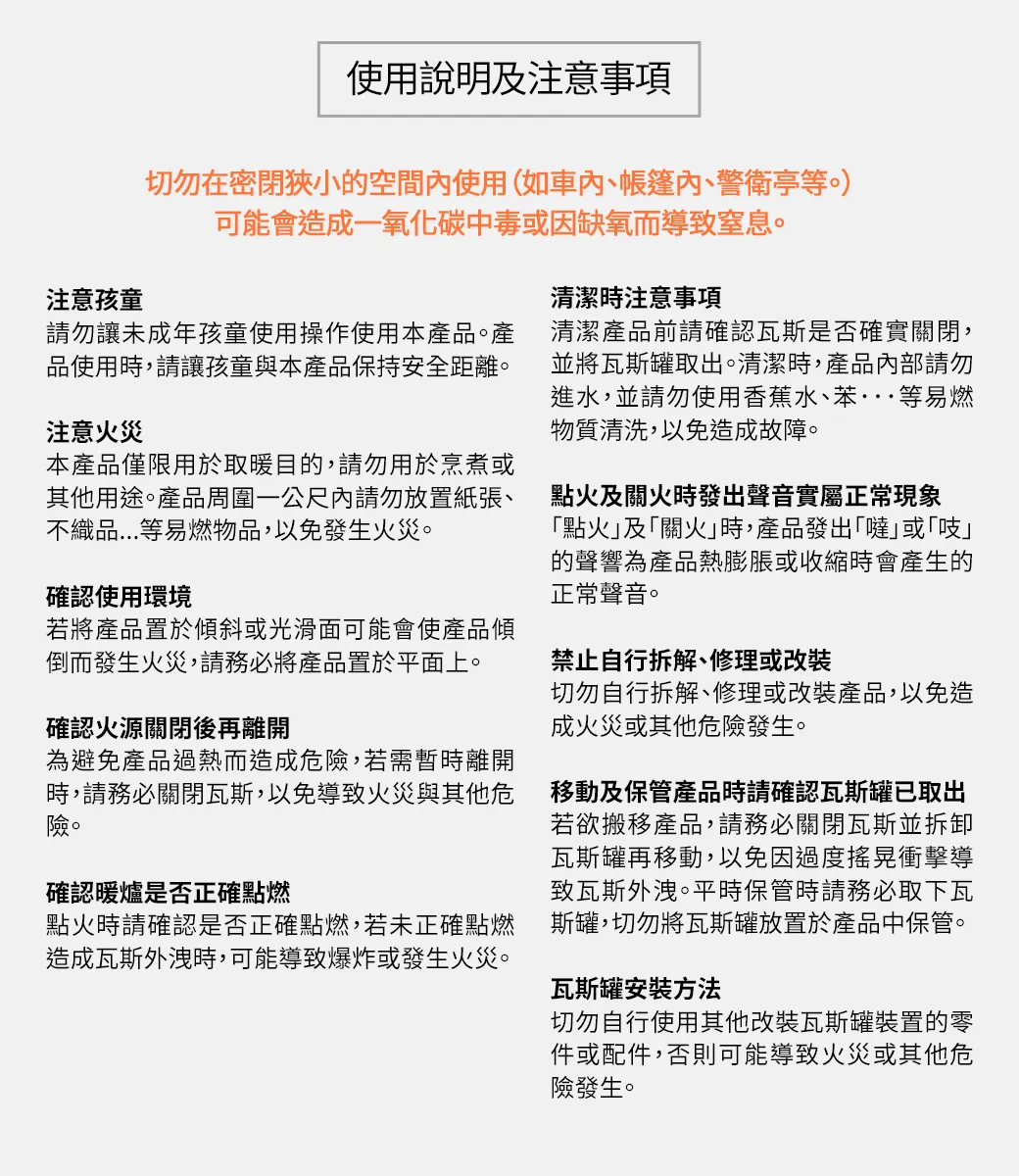 使用燃氣:卡式瓦斯罐(液化丁烷)