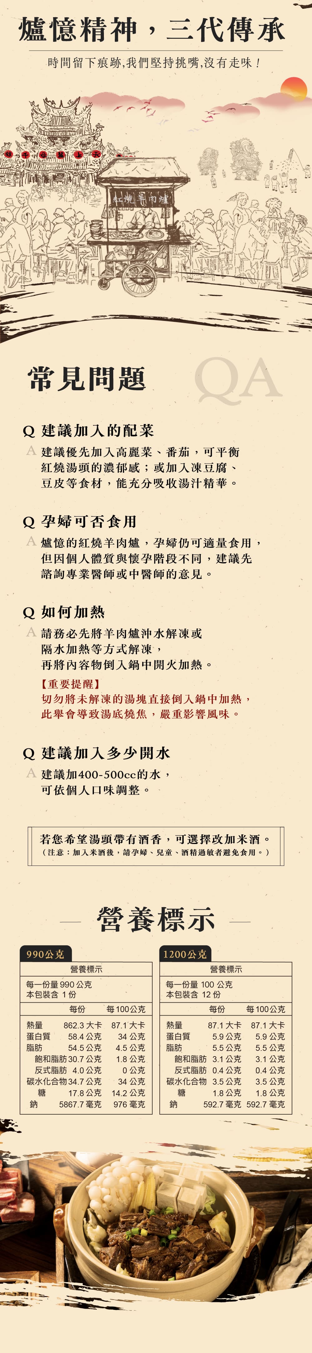 商品規格/重量/淨重: 總重990g(濃縮高湯800g、羊排固形物160g、沾醬包30g)