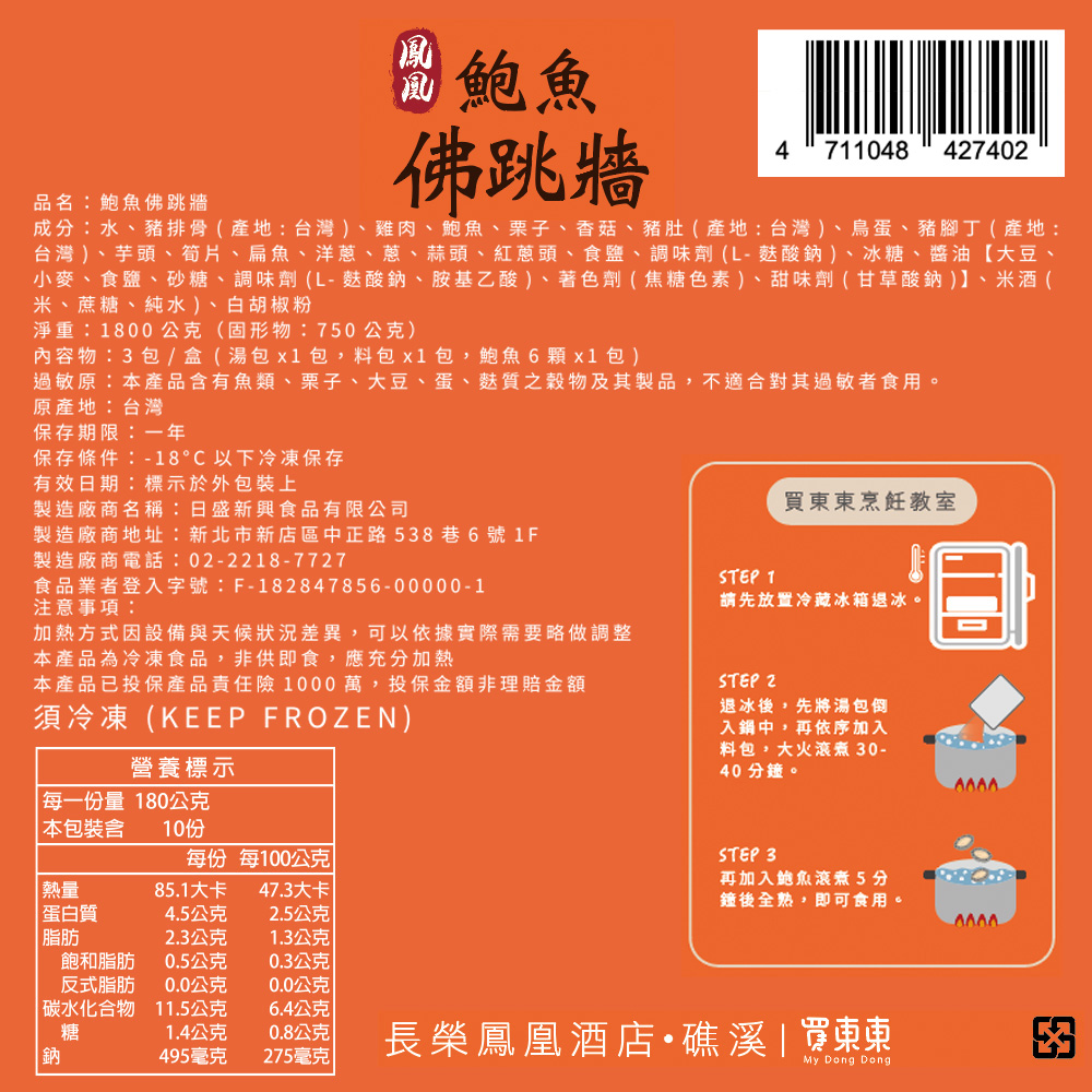 內含:【長榮鳳凰酒店(礁溪)】鮑魚佛跳牆-1800g(固750g)