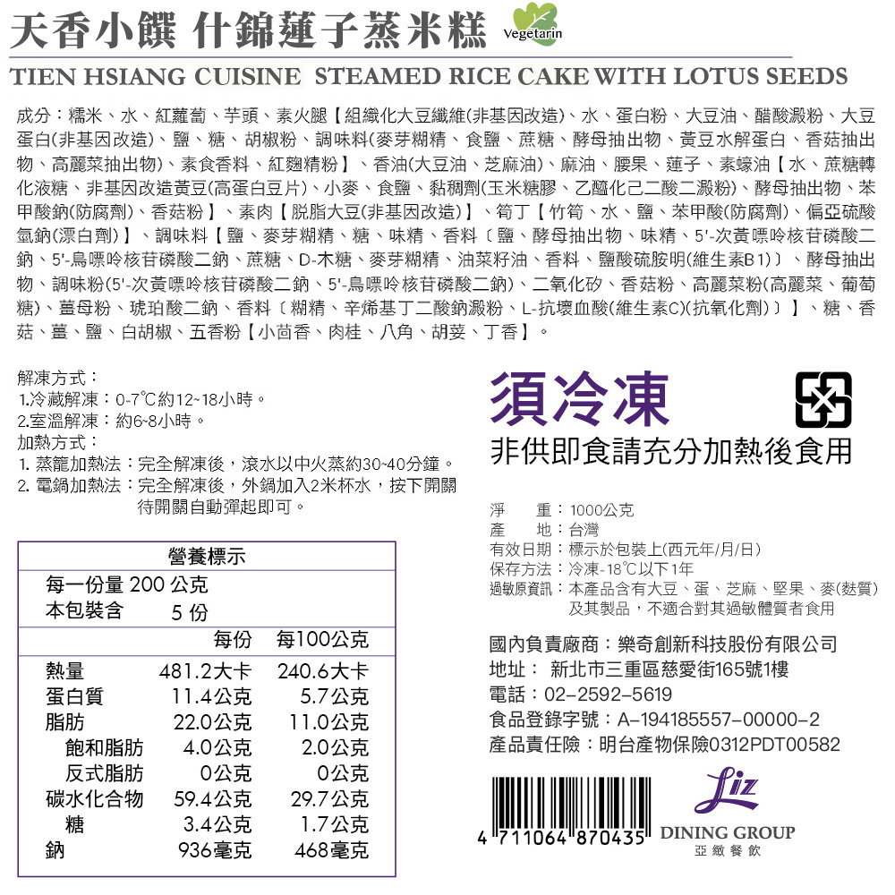 內含:【天香樓mini】什錦蓮子蒸米糕-1000g