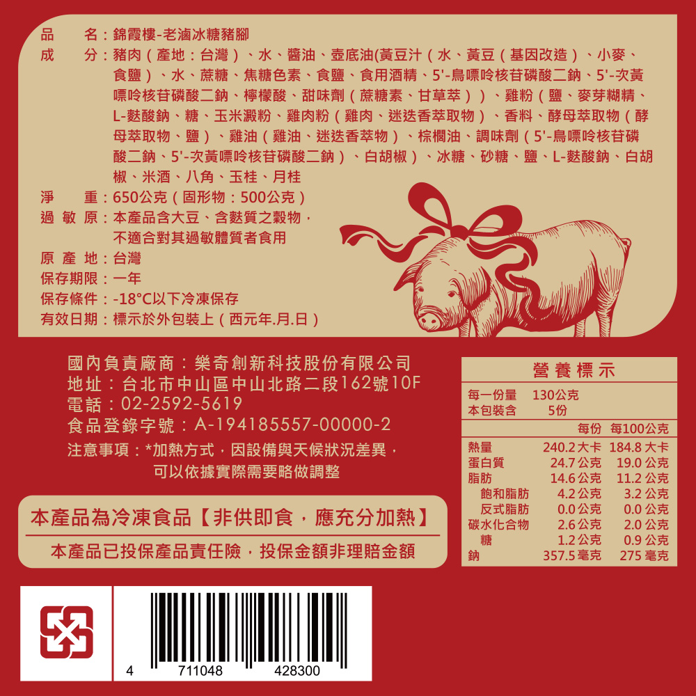 內含:【錦霞樓】老滷冰糖豬腳-650g