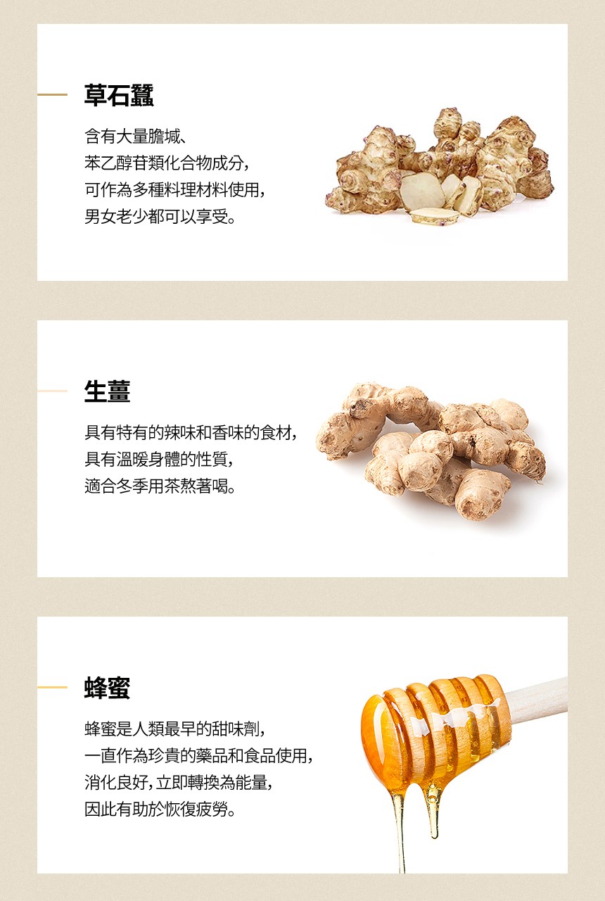 食用方式:依個人需求每天可食用2~3包,可直接或隔水加熱後飲用