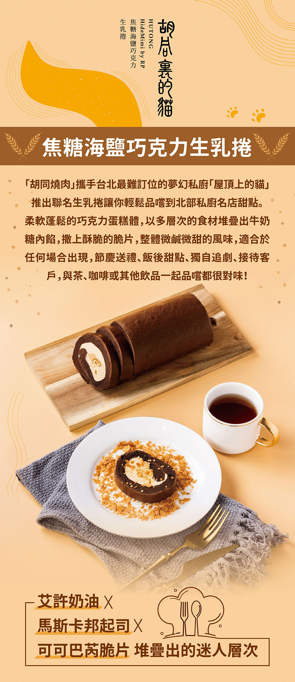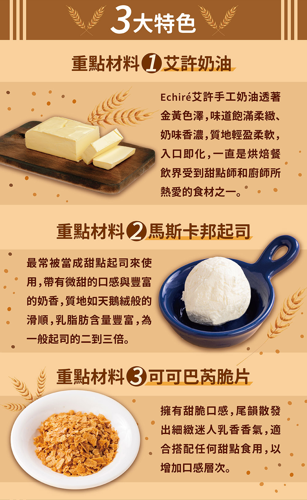 成分:雞蛋、卡邦鮮奶油(鮮奶油70%(鮮奶油、鹿角菜)、馬斯卡邦起士30%(鮮奶油、牛奶、奶粉、葡萄糖、乳酸)、打發專用脂(水、完全氫化棕櫚仁油、葡萄糖、糖、複方乳化劑(聚山梨醇酣脂肪酸酯六十、乳酸硬脂酸鈉、脂肪酸山梨醇酣酯、脂肪酸蔗糖酯、大豆卵磷脂)、複方品質改良劑(羥丙基甲基纖維素、多磷酸鈉、玉米糖膠、碳酸氫鈉)、鹽、香料、β-胡蘿蔔素(葵花籽油、β-胡蘿蔔素))、動物性鮮奶油(鮮奶油、鹿角菜)、砂糖、水、低筋麵粉、玉米粉、大豆沙拉油、可可粉(可可豆、碳酸鉀)、糖粉(葡萄糖、馬鈴薯澱粉、完全氫化棕櫚油、植物油脂(棕櫚)、小麥澱粉、天然奶油香料、香草香料)、鹽、碳酸氫鈉、塔塔粉(酸性焦磷酸鈉、酒石酸氫鉀、樹薯粉、麥芽糊精)