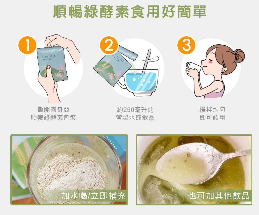 2.內含豐富膳食纖維,建議比平時多補充1000c.c以上水分。