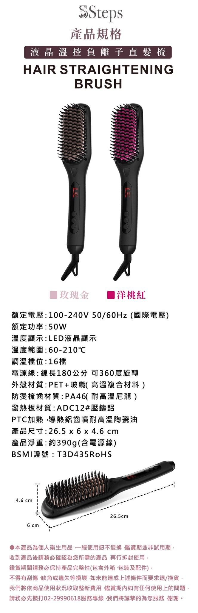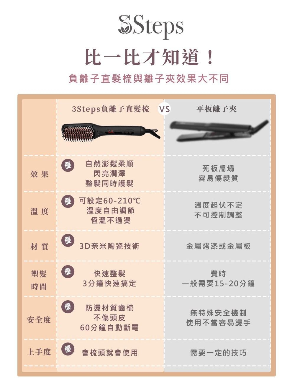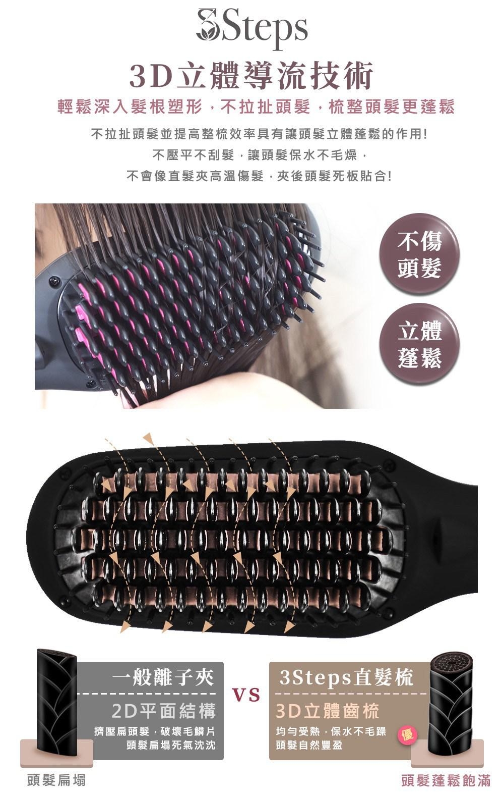 內含:【3Steps】液晶溫控負離子直髮梳S-CHD008