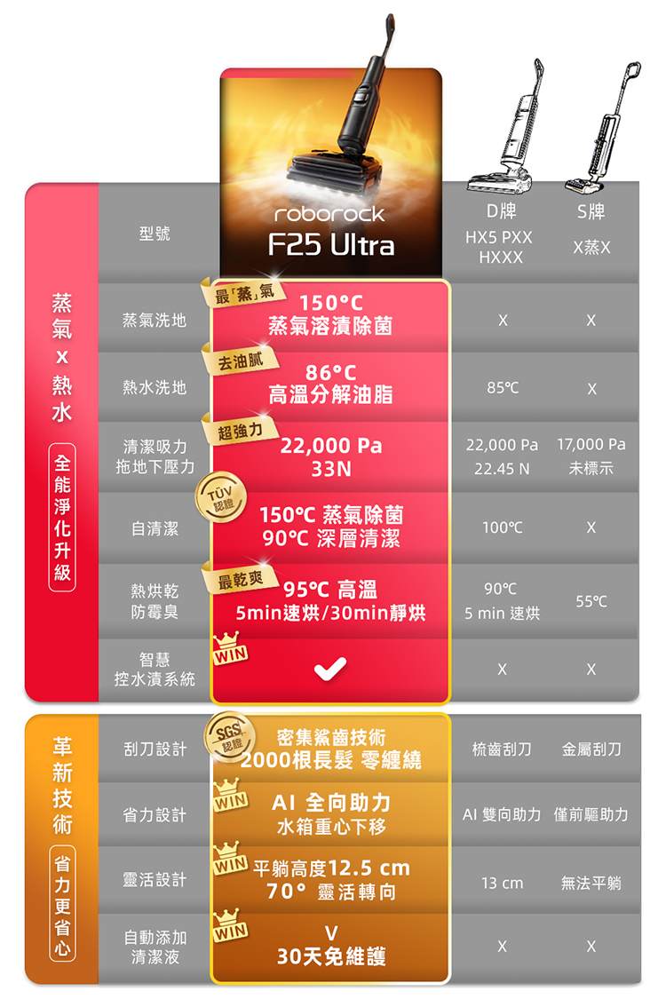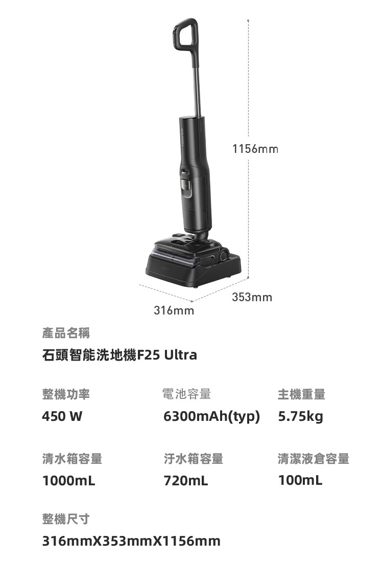 產品名稱: Roborock 石頭科技 《 F25 Ultra|淨蒸者》蒸氣x熱水雙效洗地|零纏繞平躺AI 吸拖洗地機