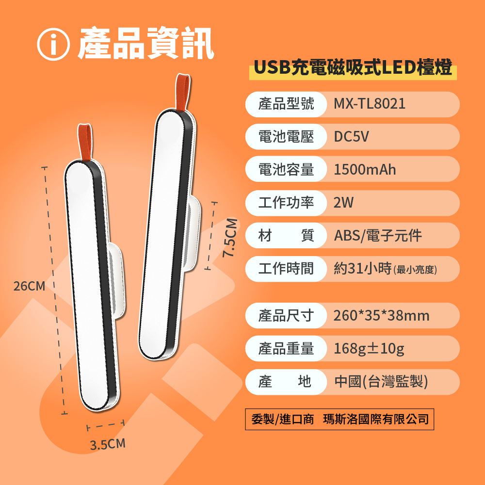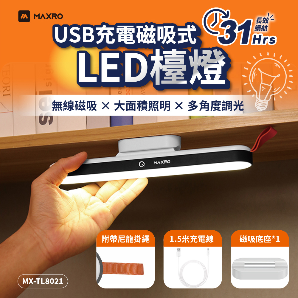內含:【MAXRO】USB充電磁吸式LED檯燈 MX-TL8021