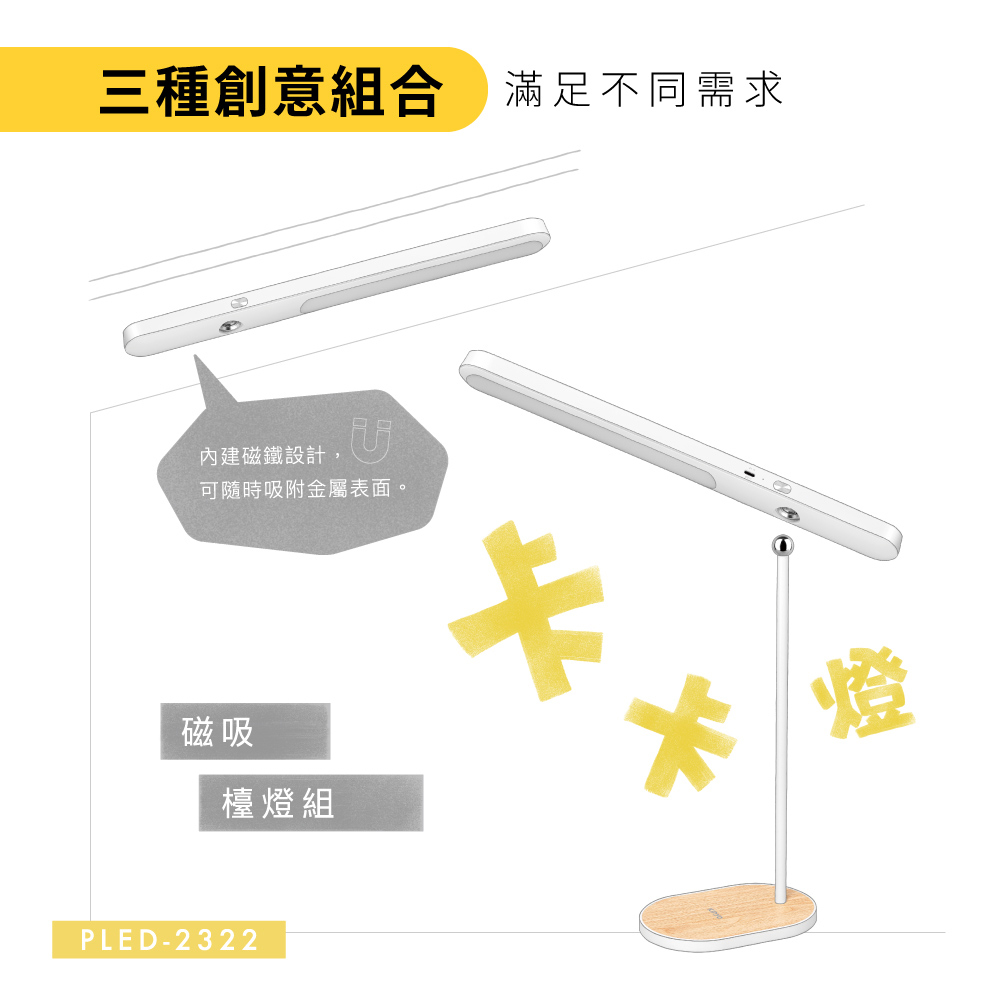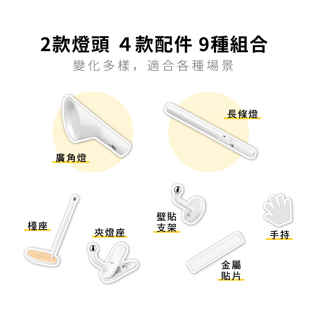產品內容:長條燈頭x1、檯座支架x1、檯座x1、Type-C電源線x1、金屬貼片x1