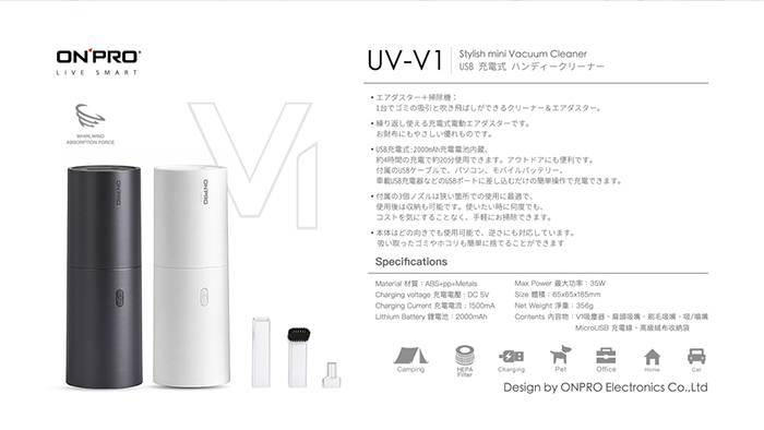 內含:【ONPRO】UV-V1 迷你手持無線吹吸兩用吸塵器