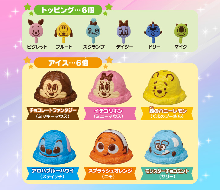 內容物:本體*1、外帶盒*1、冰淇淋器具*4、冰淇淋*6、造型籤*6。