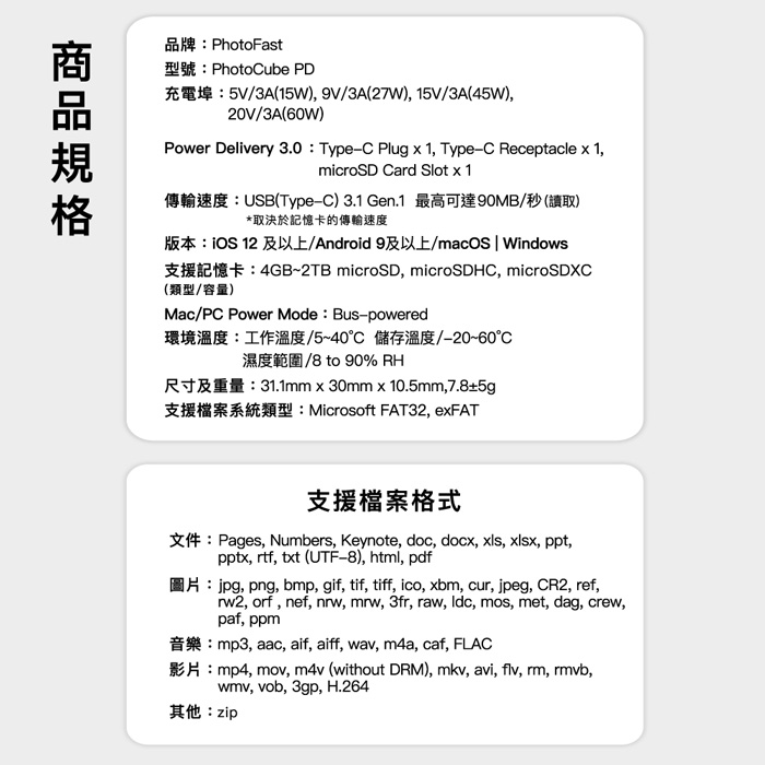支援檔案系統類型:Microsoft FAT32, exFAT