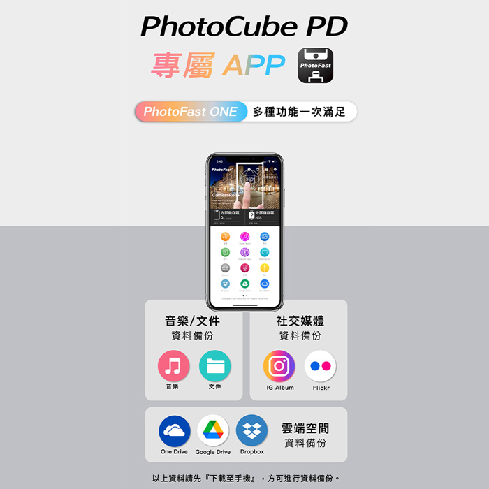 步驟1.請移除app,重新下載安裝『PhotoFast ONE』app,安裝完之後先”不要"開啟app。