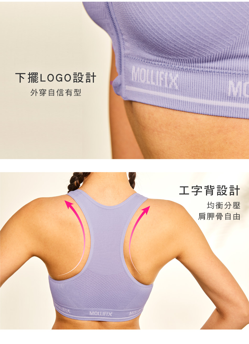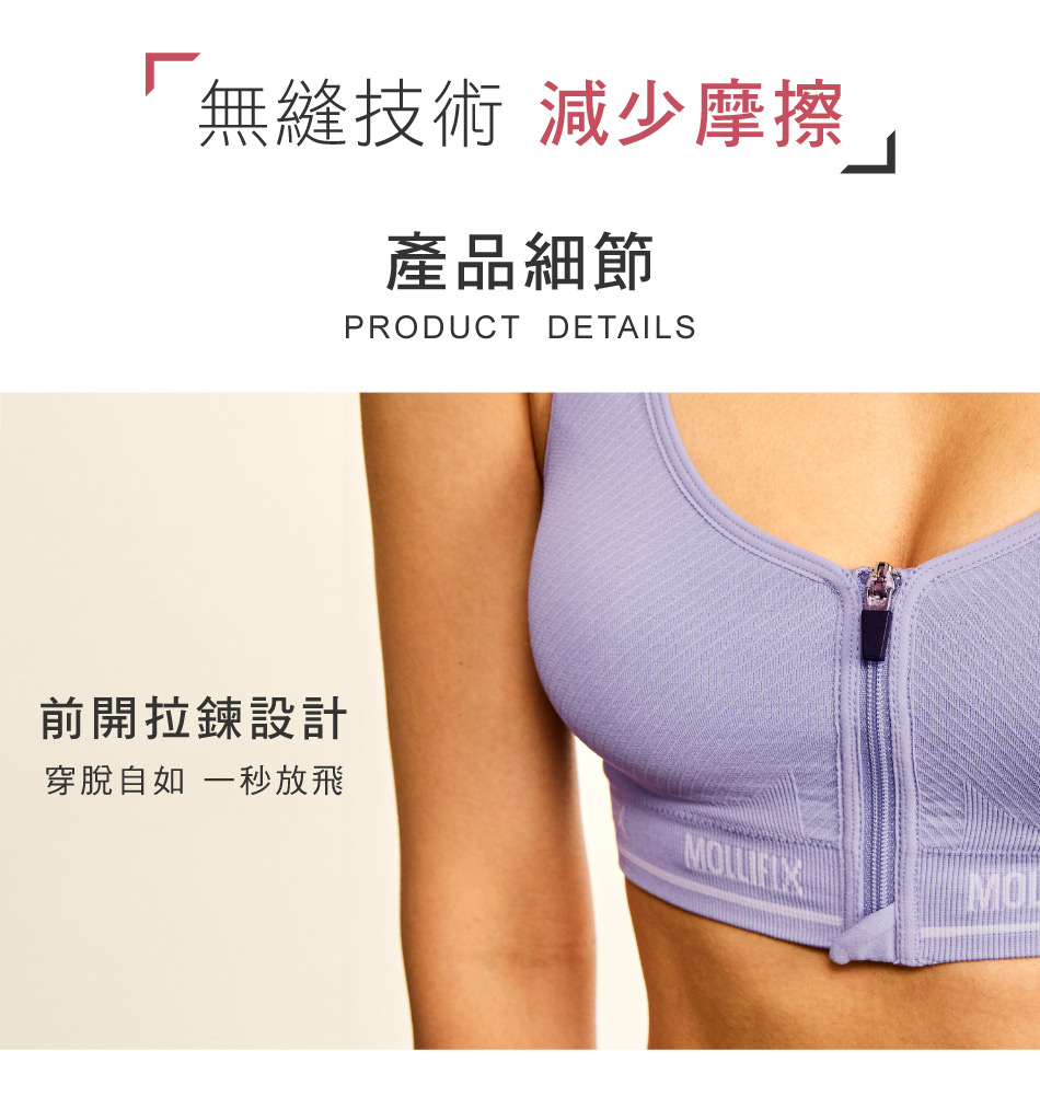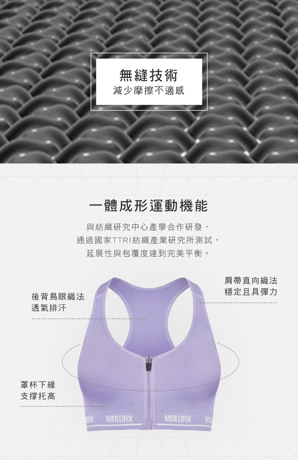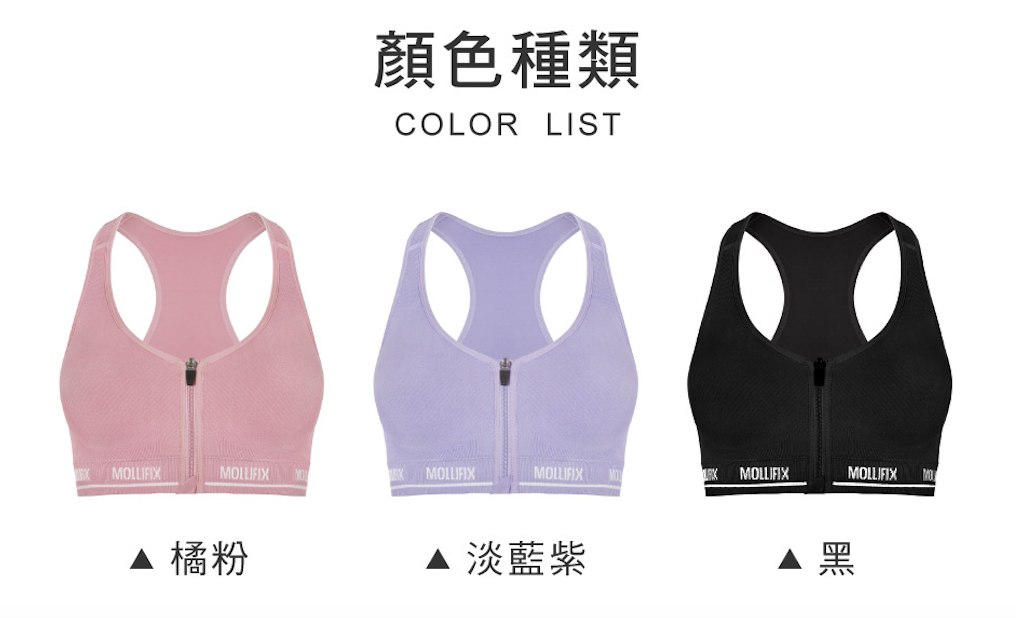 內含:【MOLLIFIX 瑪莉菲絲 】A++3D無縫前開拉鍊運動BRA-3色(黑、橘粉、淡藍紫)