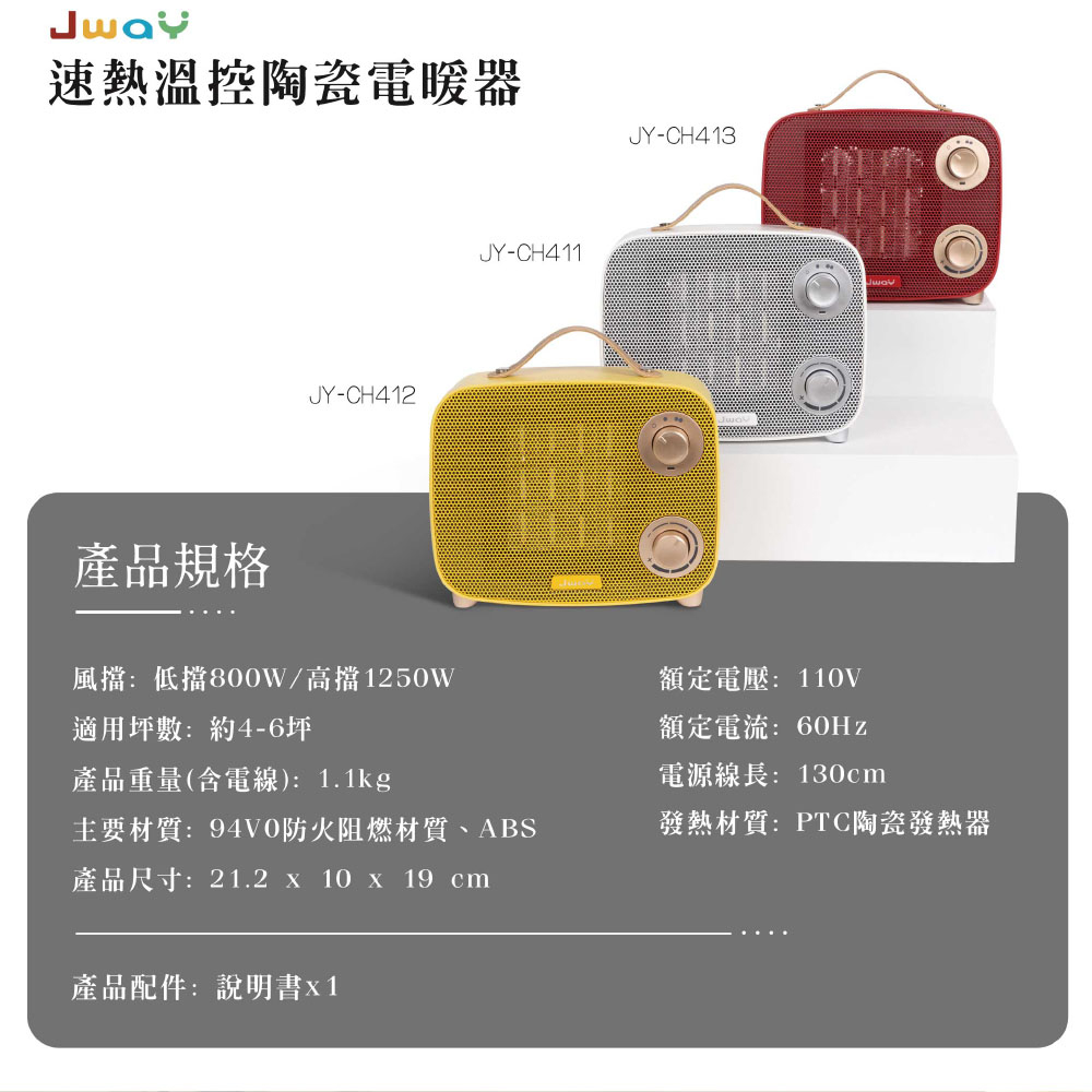 內含:瞬熱溫控陶瓷電暖器-JY-CH411、說明書