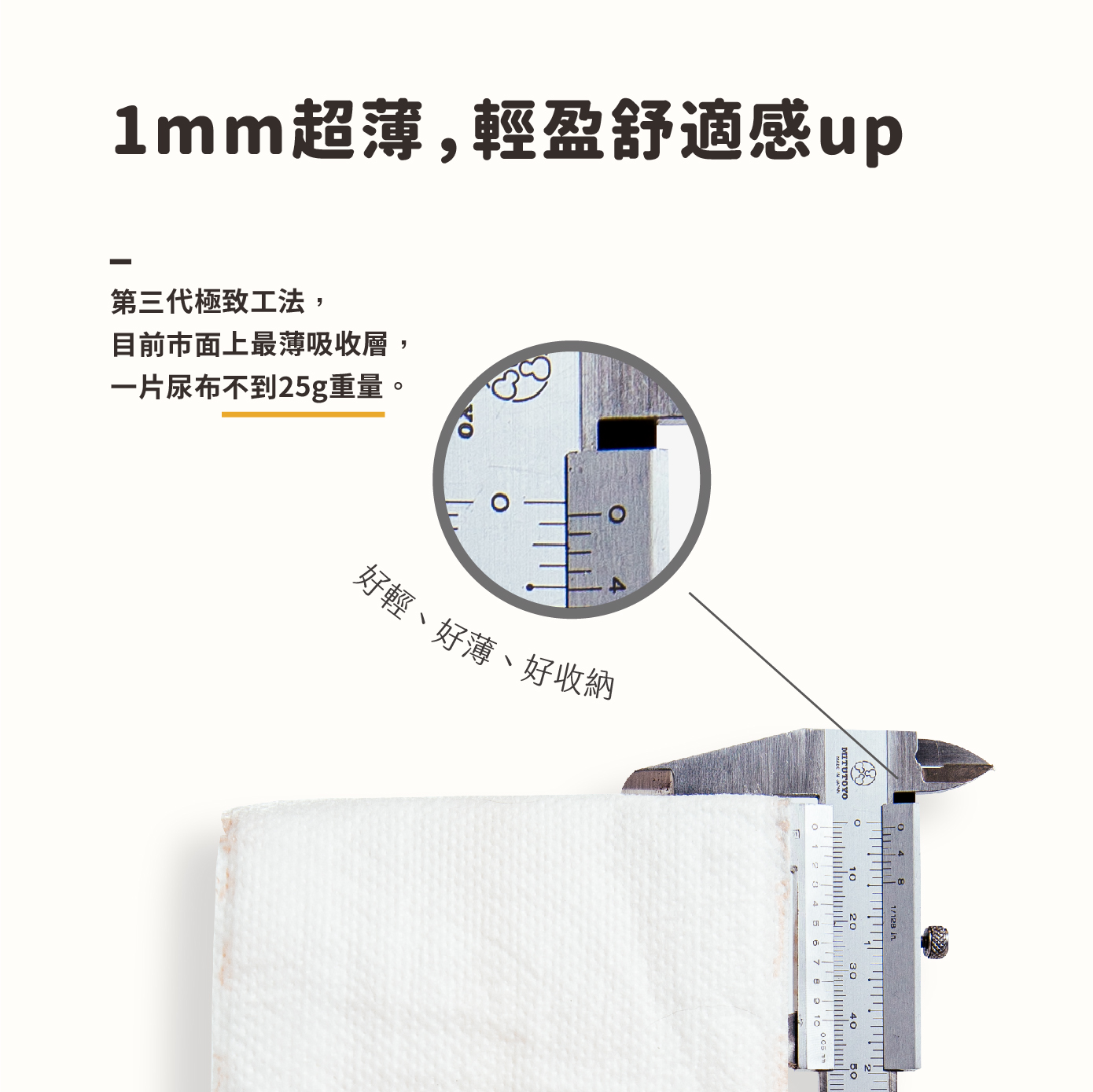 ✓ 1mm市面上最薄複合式吸水芯體