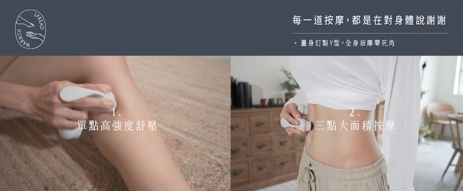 量身訂製Y型,全身都能按摩!可使用單點高強度舒壓、或是三點大面積按摩