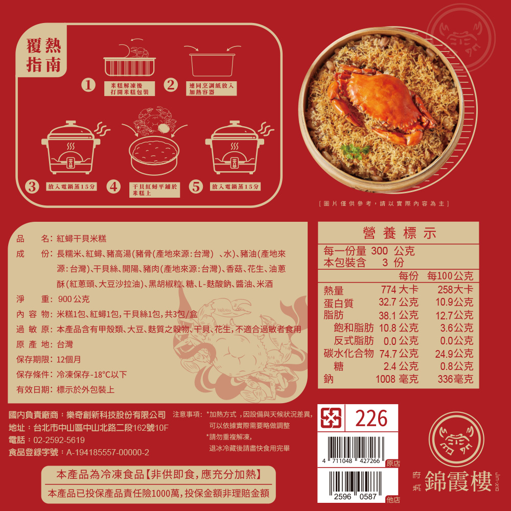 內含:【錦霞樓】紅蟳干貝米糕-900g