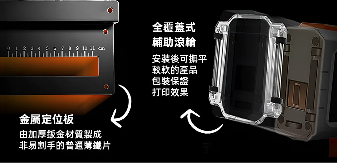 內含:主機+輔助滾輪+定位架+黑色墨盒