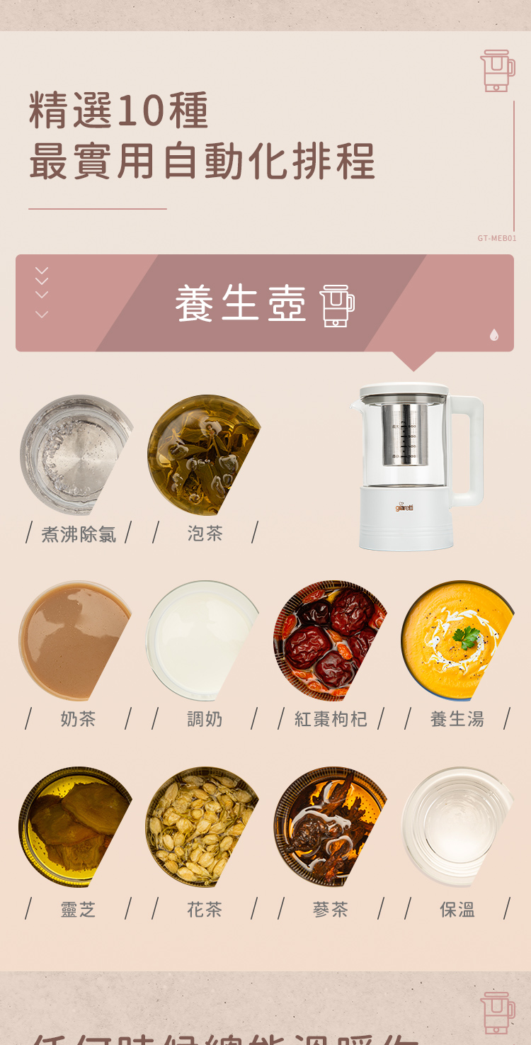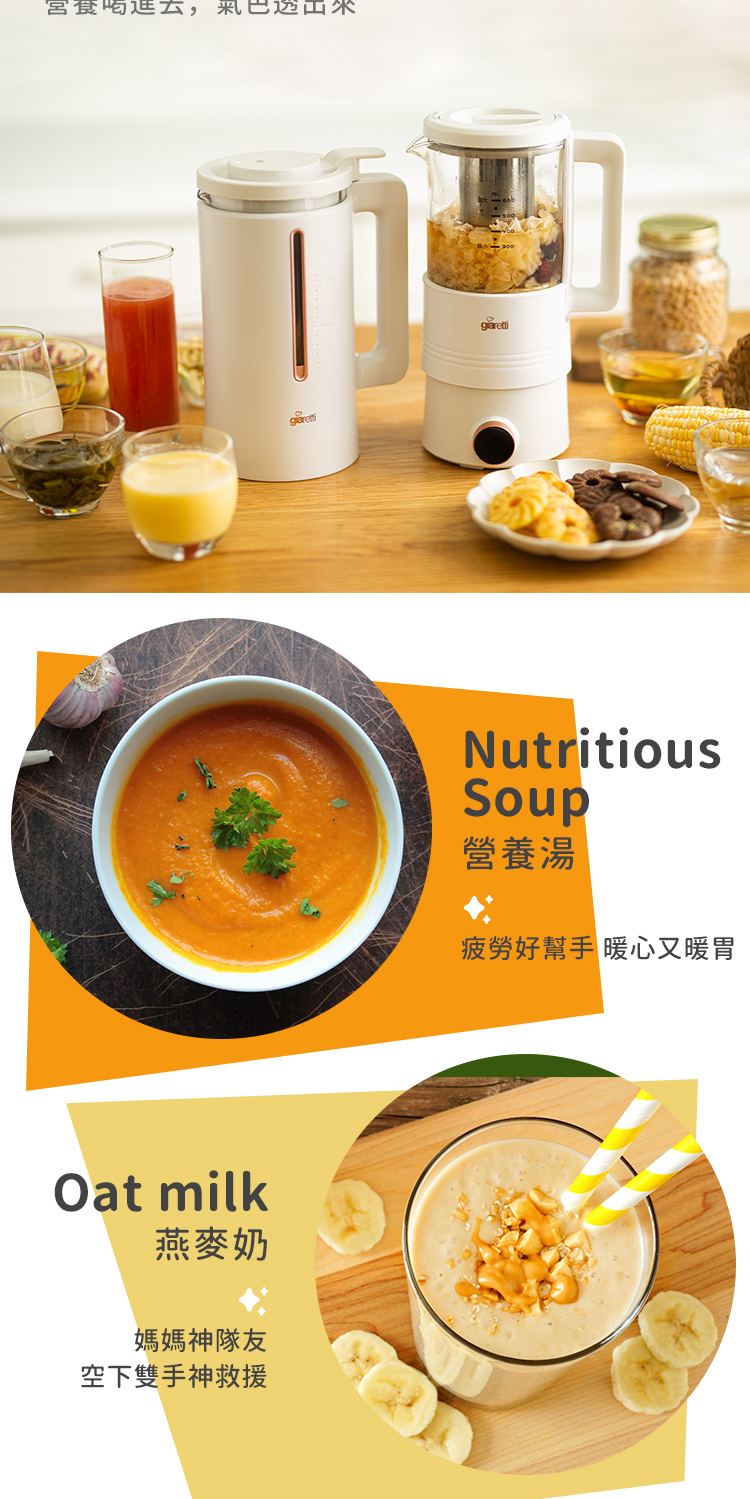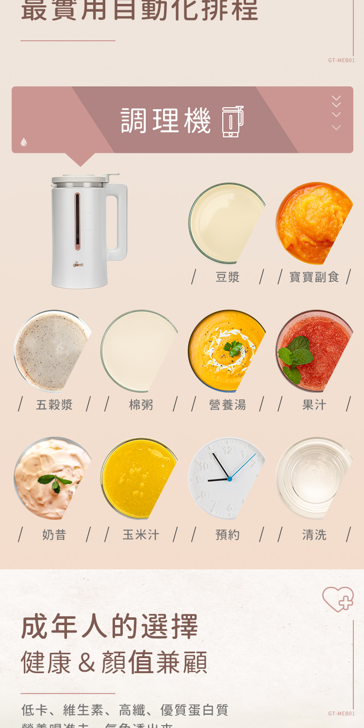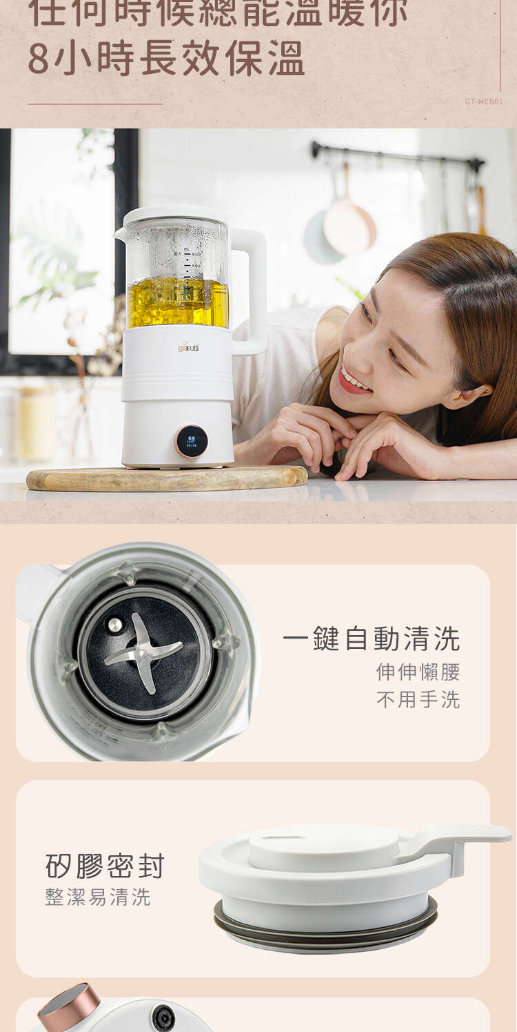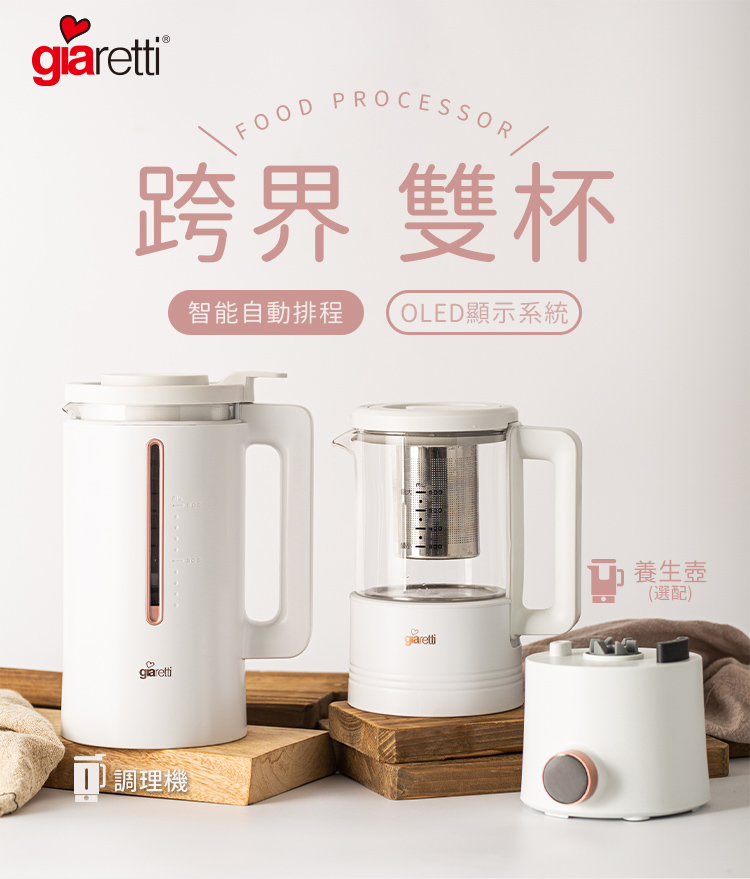 內含:【義大利Giaretti 珈樂堤】全自動智能美型二合一調理養生機(GT-MEB01)+調理養生壺(GT-MEB-HP)